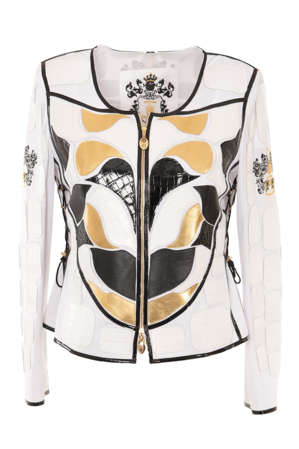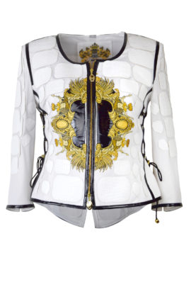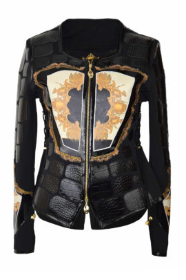• Amirage Jacke,bedrucktes Leder, Krokopatches und "amirage-embroidery"Amirage Jacke,bedrucktes Leder, Krokopatches und "amirage-embroidery"