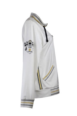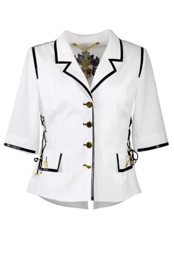 “Amirage”-Jacke mit Lederpatches in Kroko-Optik, und “amirage-embroidery”, (2 Motive) auf Lack gestickt, in ecru-schwarz