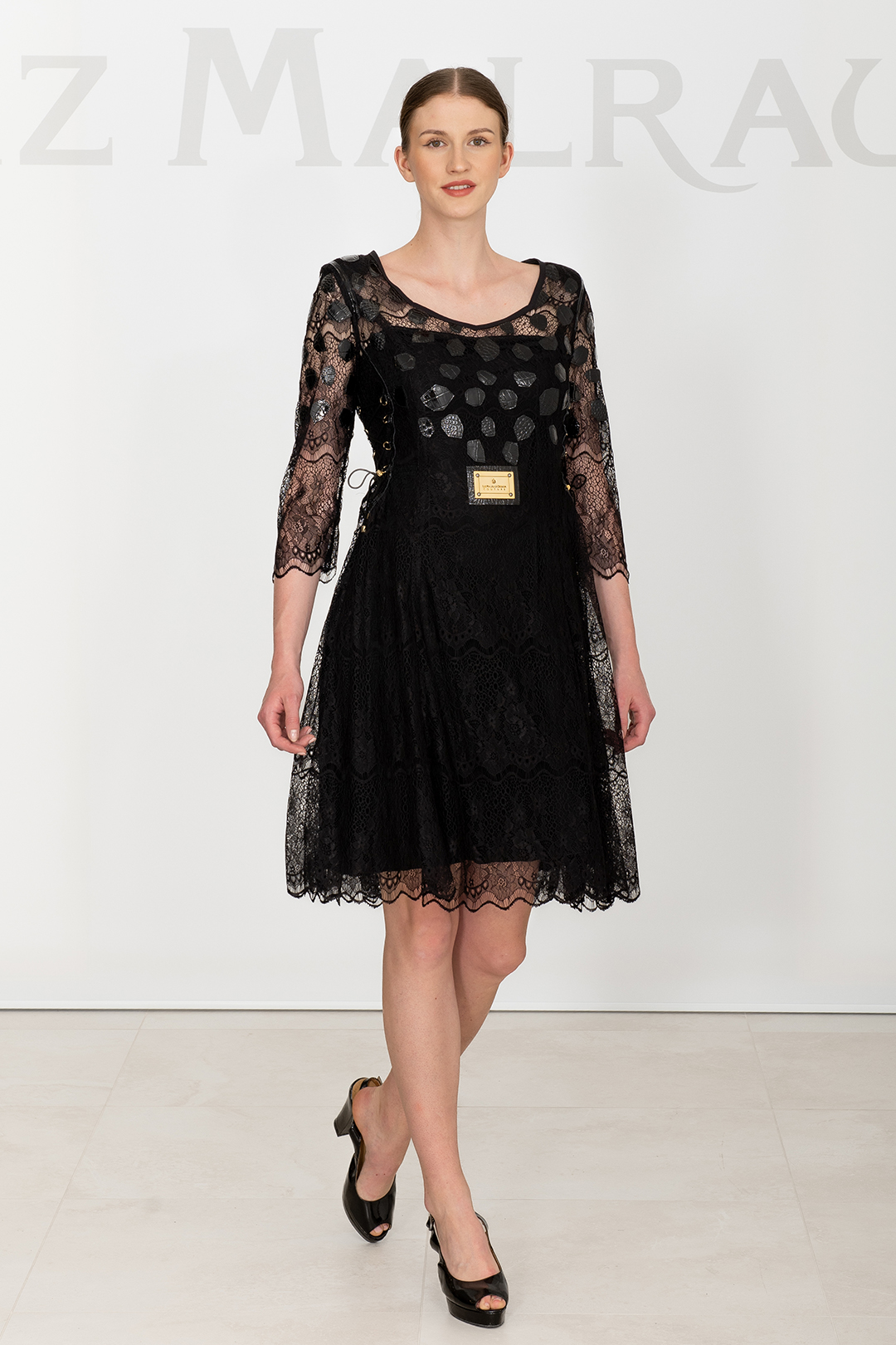 • Kleid mit 3-fachen Chiffone-Volants am Saum, Mashärmeln in 3/4 Länge, Lackkontrasten und LMC-Logo