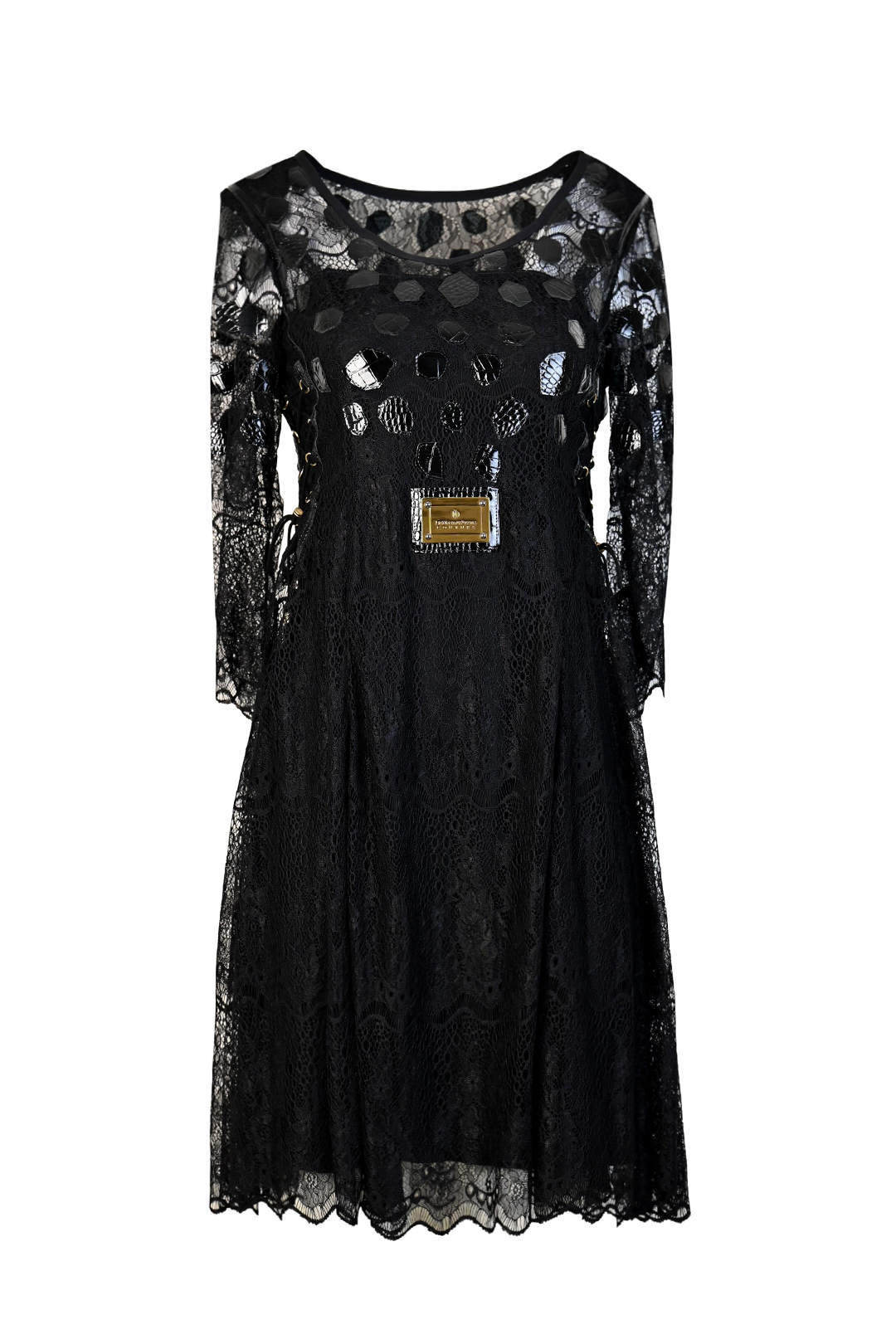 Kleid mit 3-fachen Chiffone-Volants am Saum, Mashärmeln in 3/4 Länge, Lackkontrasten und LMC-Logo