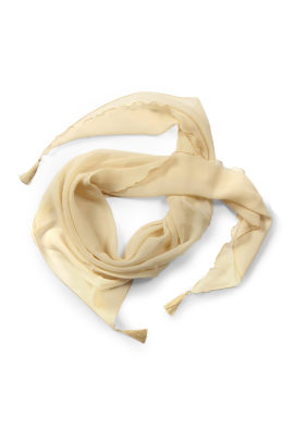 Maxi Tuch aus reiner Seide mit “Signatur-embroidery” und 3 handgemachten Quasten