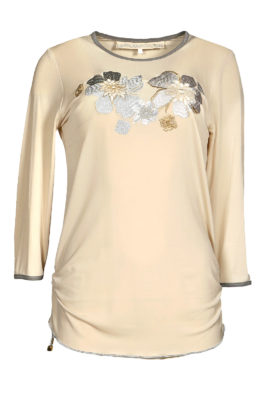 Shirt mit “lace-embroidery”, mit 50 Kristallen und Perlen von Swarovski appliziert, 3/4 Ärmel