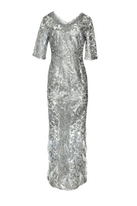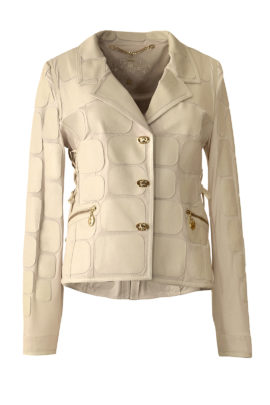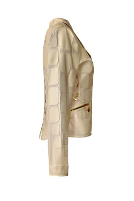 Haute Couture-Jacke mit “lace-embroidery” und Champagner-farbenen Lederpatches, von Hand mit 320 Kristallen und Perlen appliziert, Multisize