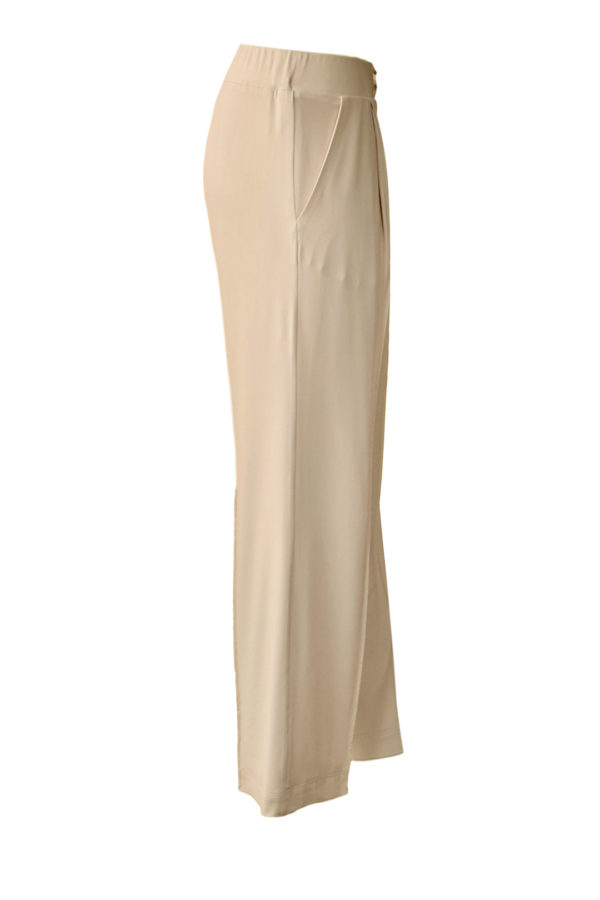 Palazzo-Hose aus reiner Seide mit 4 Taschen und zweifarbigen elastischen Bund, 7/8 Länge