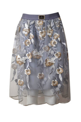 Jeans, grey mit gestickten Bordüre und Kontrasten