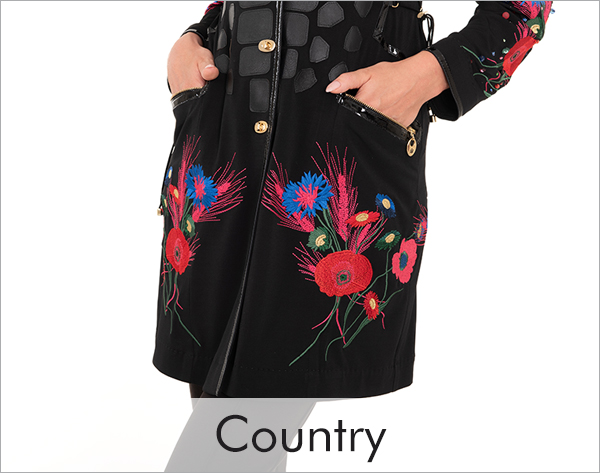 Couture-Jacke mit Einsatz aus bestickter und Perlen-applizierter Spitze mit Nappalederpatches und schwarzen Lackkontrasten