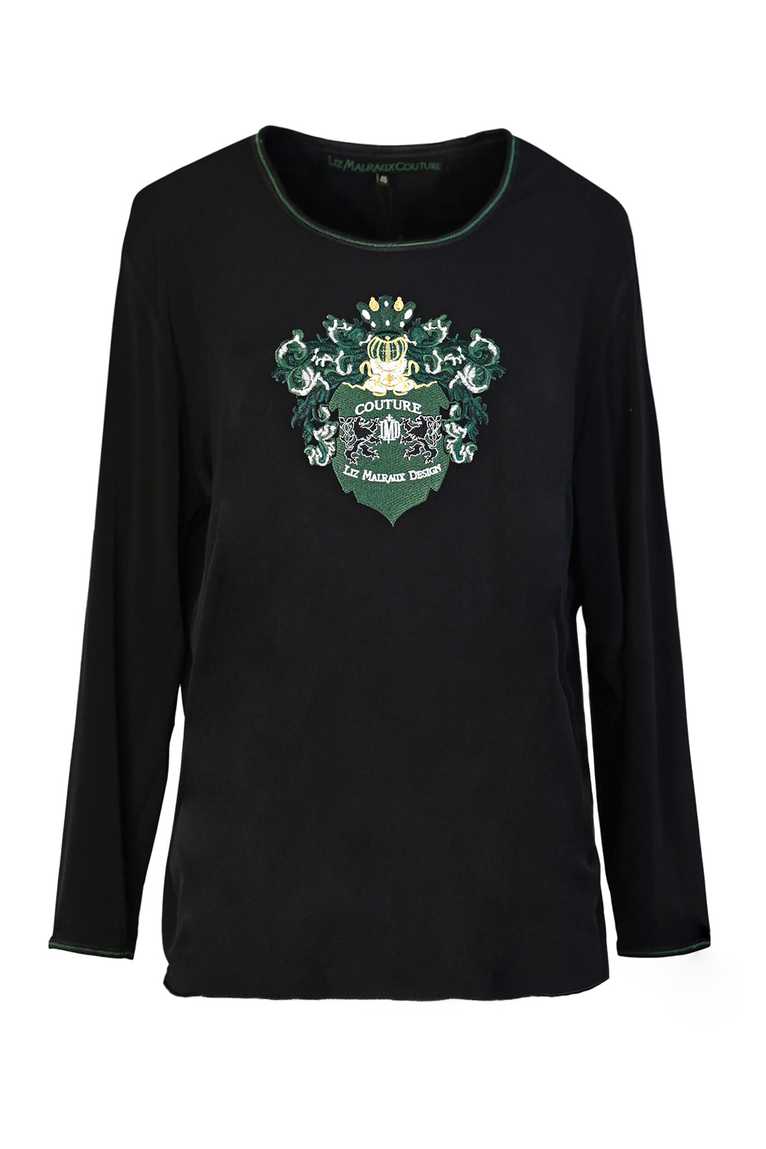 Shirt “Classic” mit “heraldic-embroidery”, zweifarbigen Kontrasten am Dekolleté und an den Ärmelabschlüssen, Langarm