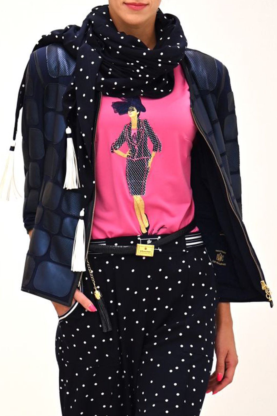 Jacke mit allover “Tupfen-Metrage-embroidery”, auf Single-Jersey mit 96.000 Stichen bestickt