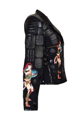 Rock, schwarz, Singlejersey mit Nappaleder Patches