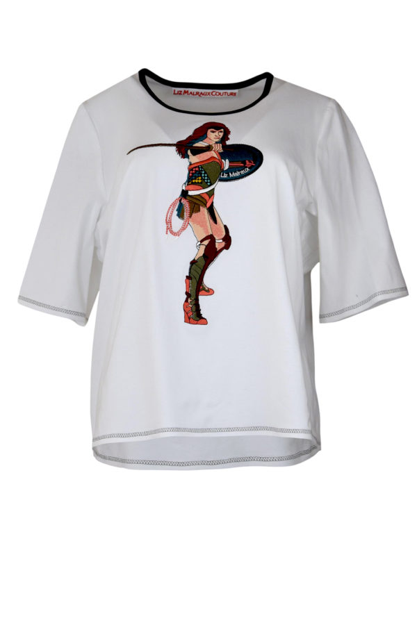 Shirt mit “fantasy-embroidery”, und 29 handapplizierten Kristallen und Perlen, Kurzarm