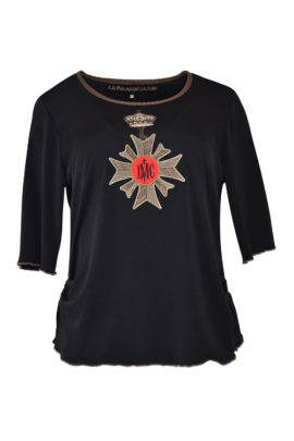 Shirt mit “salamander-embroidery” und Swarovski-Kristallen, Kurzarm