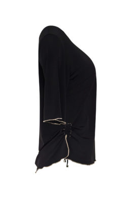 Jacke mit schwarzen Nappapatches auf Jersey appliziert, mit angeschnittenem Dekolleté und Langarm