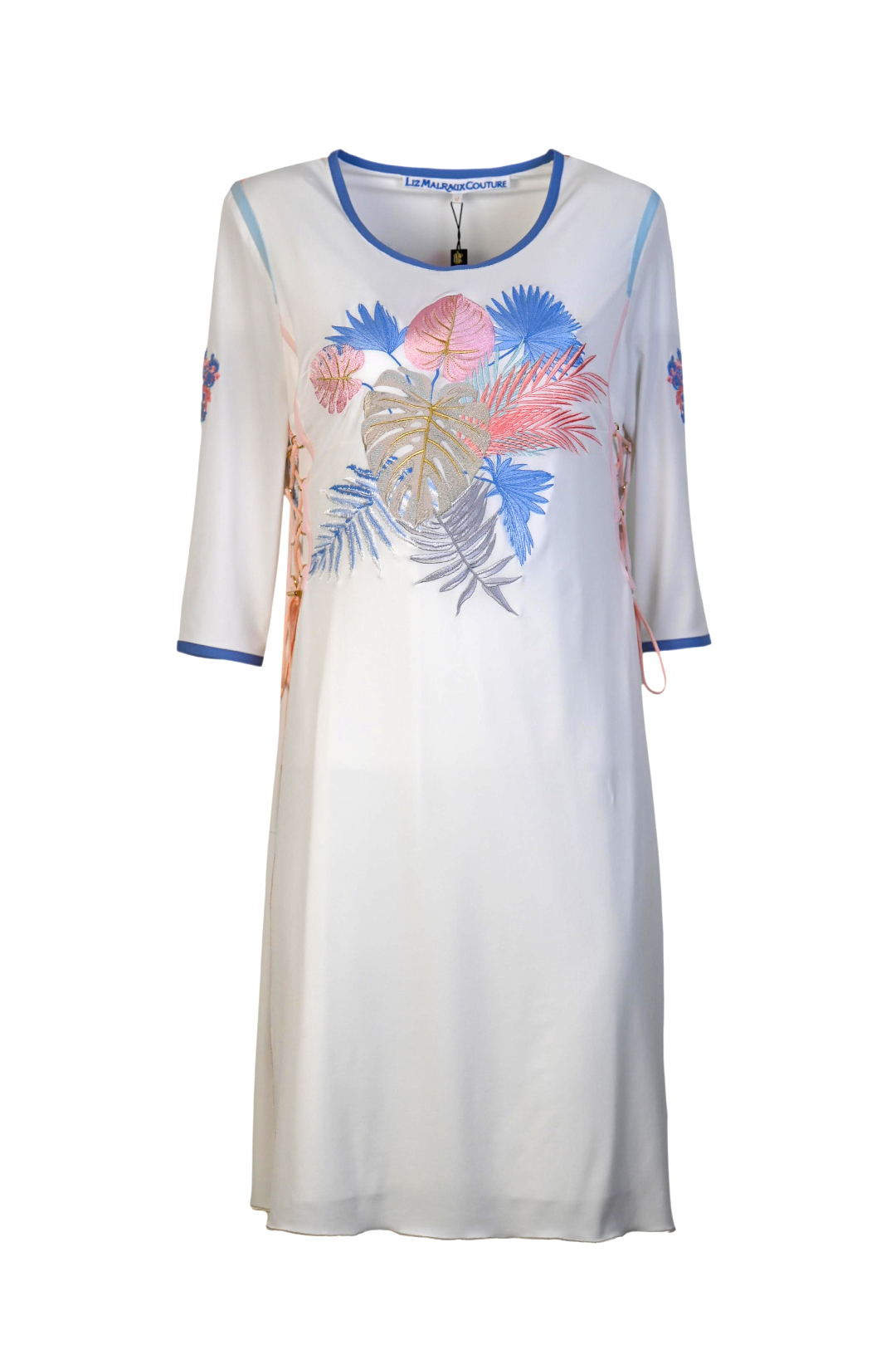 Kleid mit “amazonas-embroidery” 2 Motive, mit Streifenbordüre und 2 Heraldik – Motiven, unKurzarm