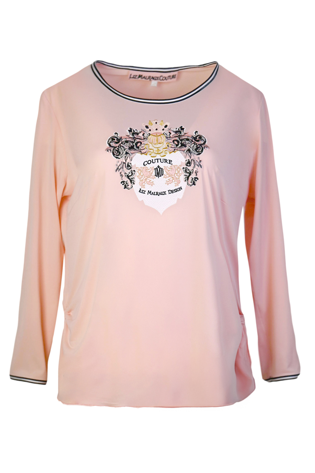 Shirt “Classic” mit “heraldic-embroidery”, zweifarbigen Kontrasten am Dekolleté und an den Ärmelabschlüssen, Langarm