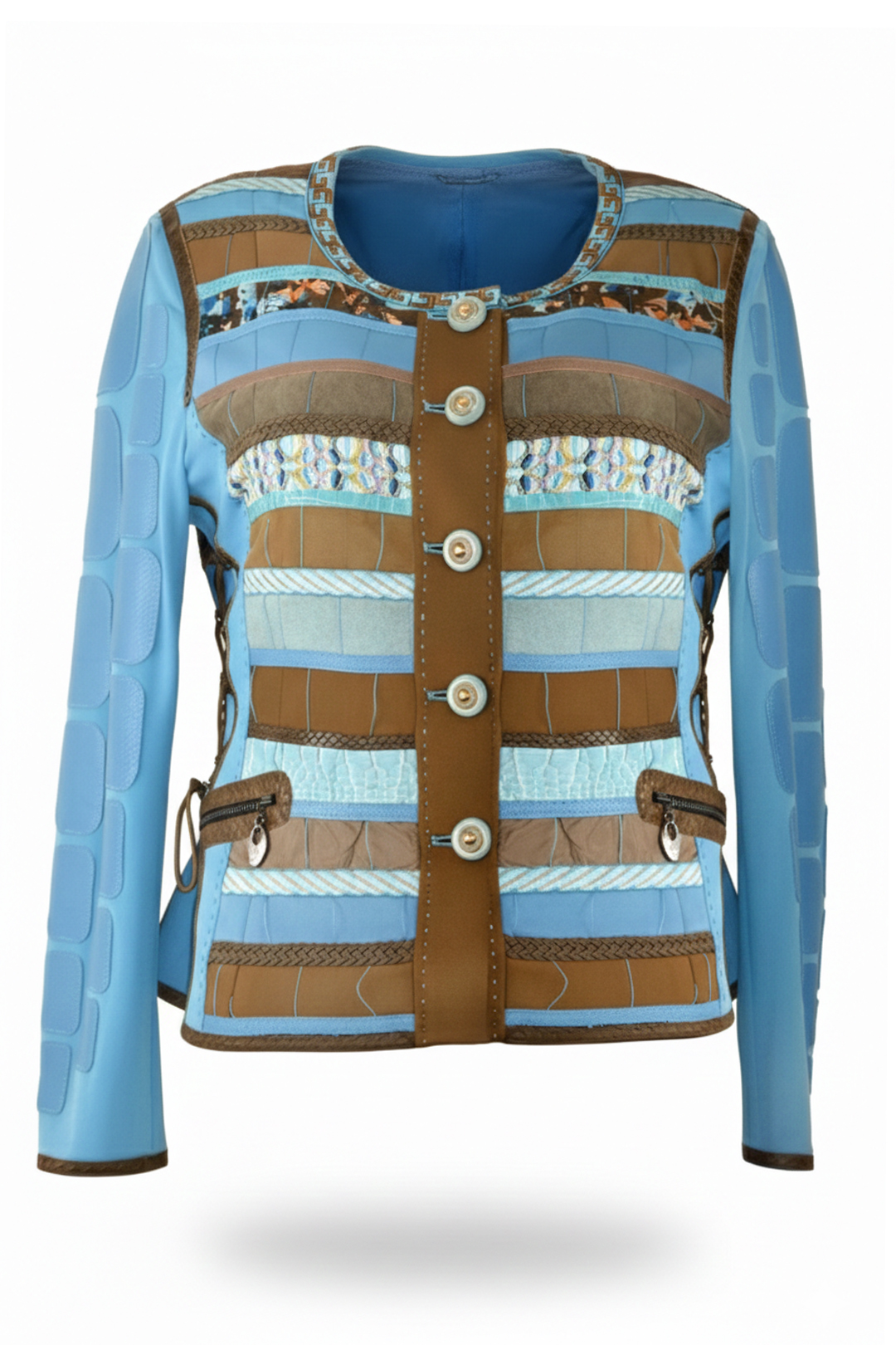 Haute Couture-Jacke appliziert mit 150 Blättern aus Krokogeprägten Leder und 40 handangenähten Kristallen, Multisize