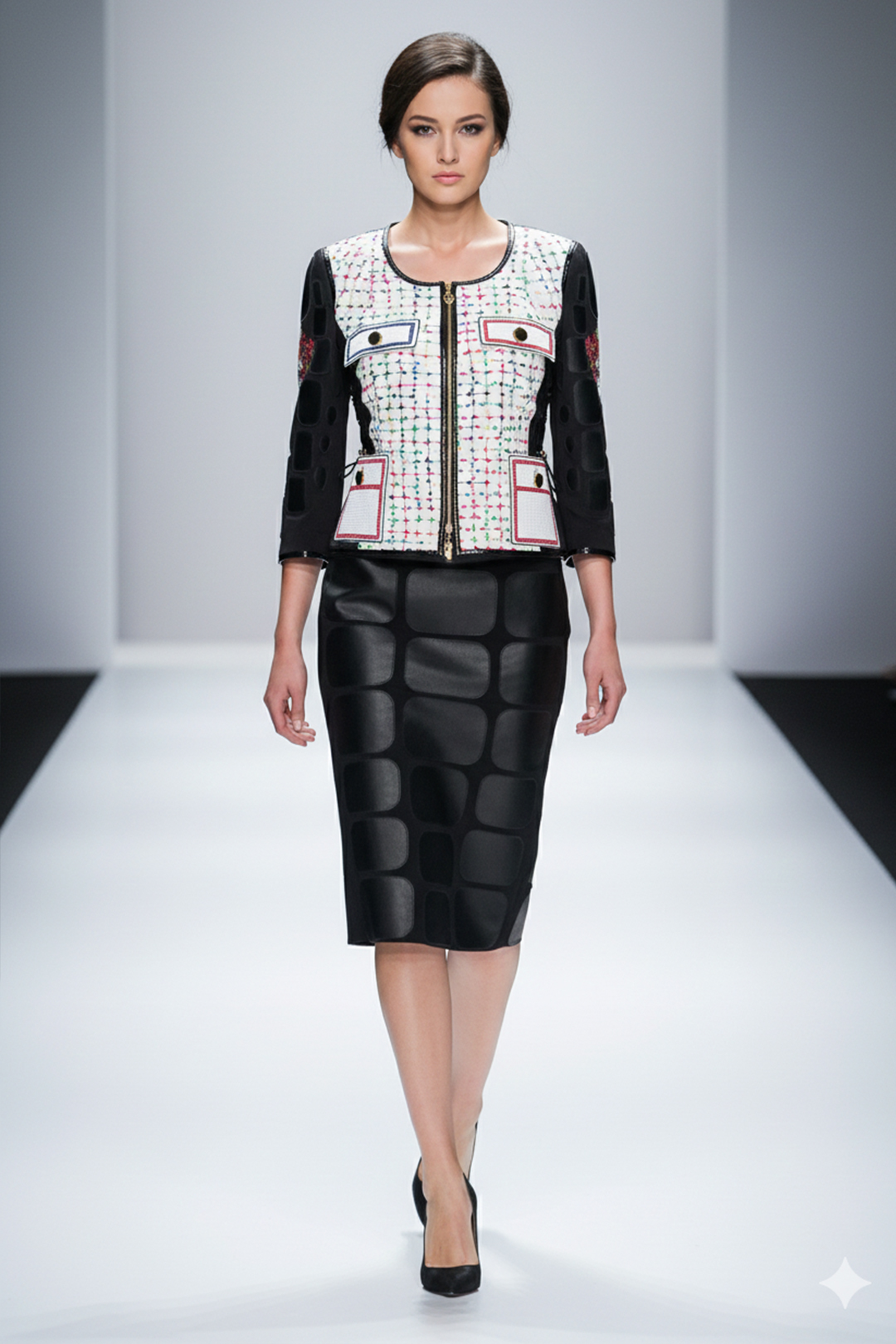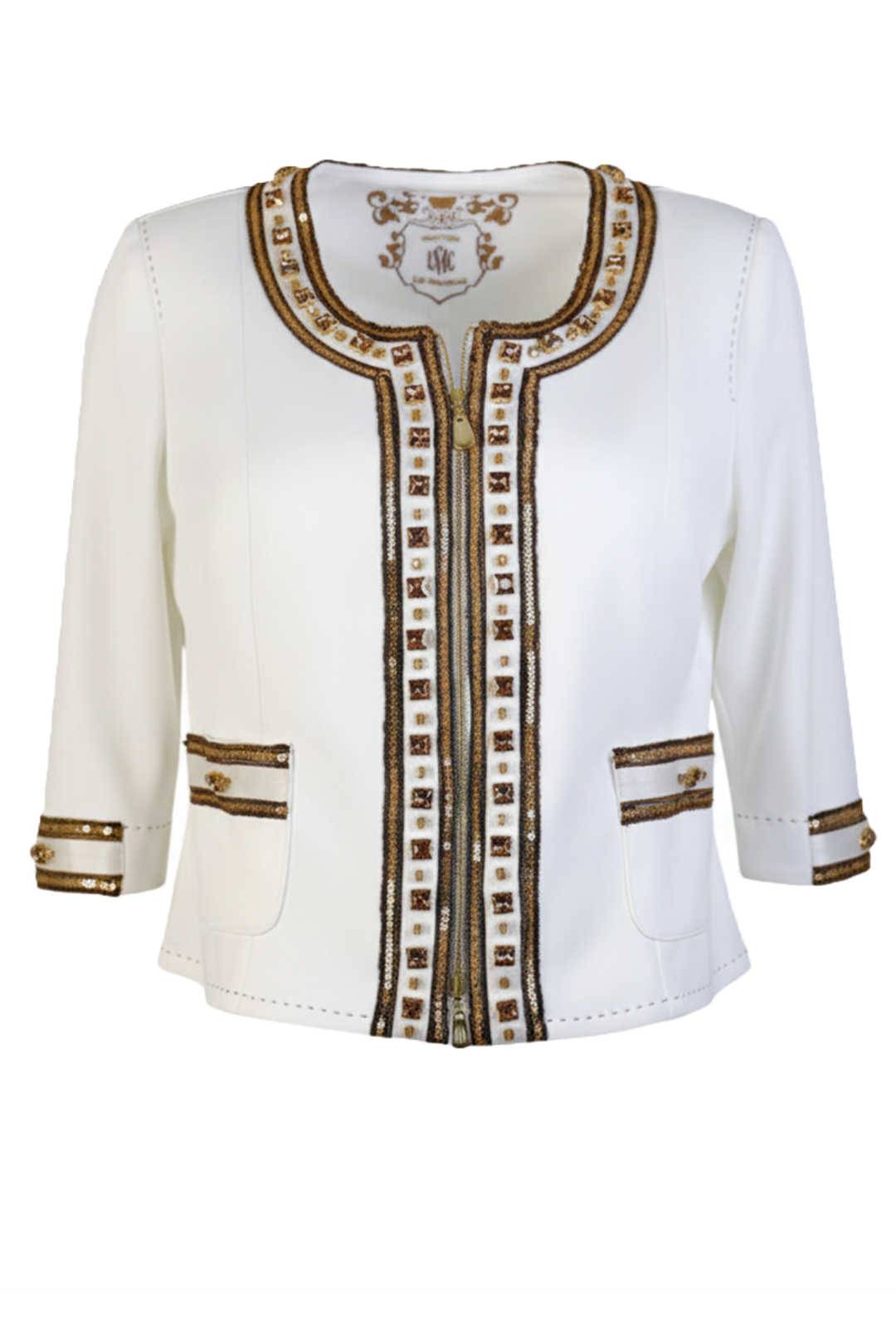 Haute Couture -Jacke mit “jewel-embroidery” und 775 handapplizierten Kristallen und Perlen von Swarovski, 4 Patten, Multisize