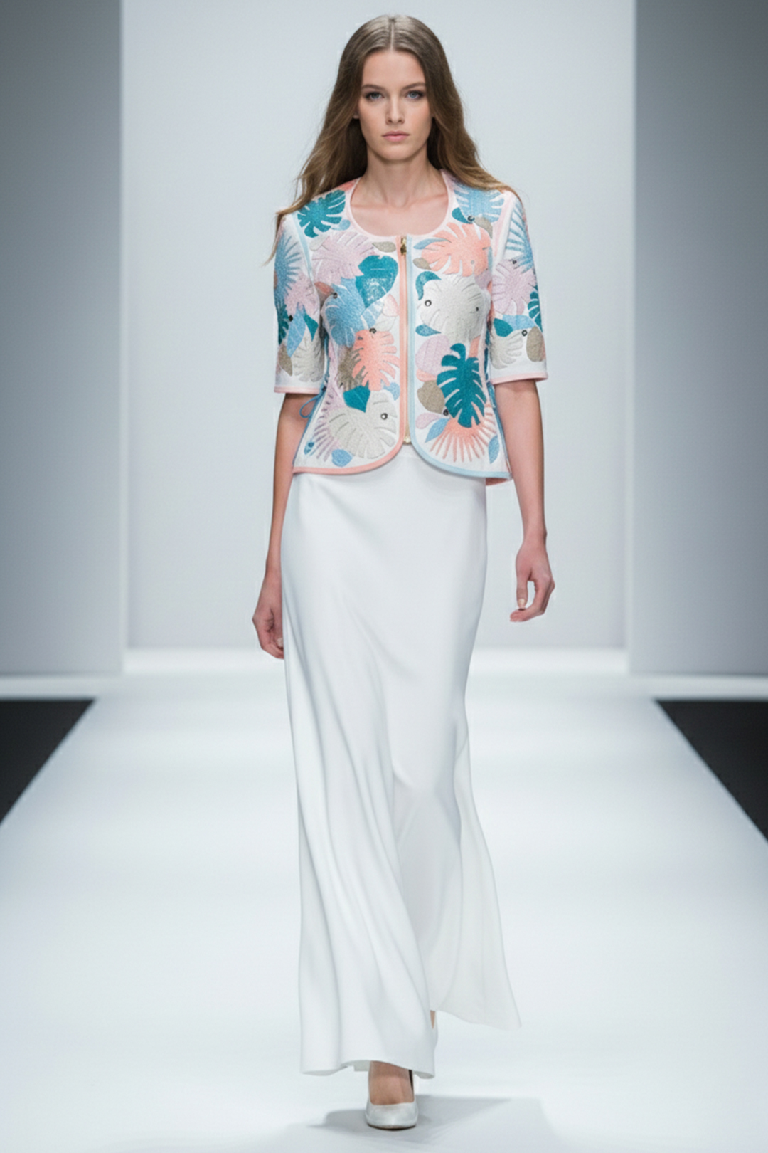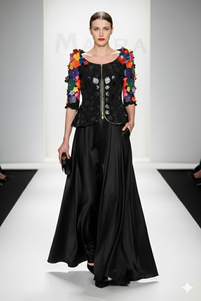 Haute Couture-Jacke mit “flower-decor-embroidery”, appliziert mit 190 Natursteinen und Nappalederpatches, mit Zipp-Taschen, Multisize