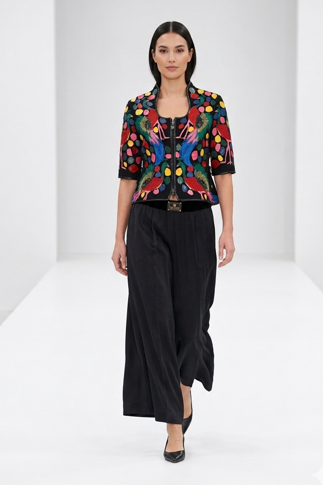 Jacke mit “Bird of Paradise” – Stickerei-10 Motive, Diamant-Patches in Multicolor, Kurzarm