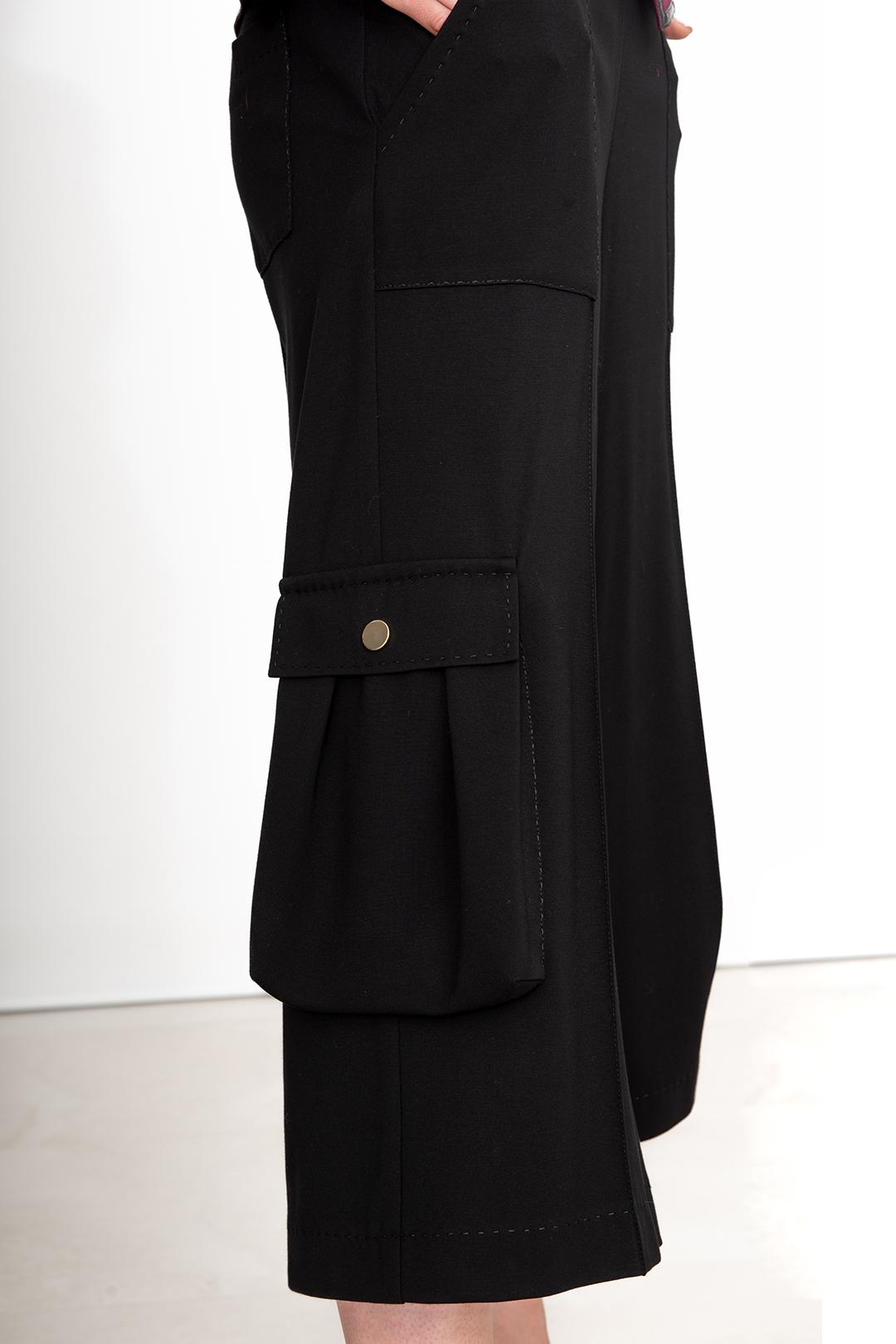 High-Rise-Ledercargohose mit Trekkingtaschen und Gürtelschlaufen