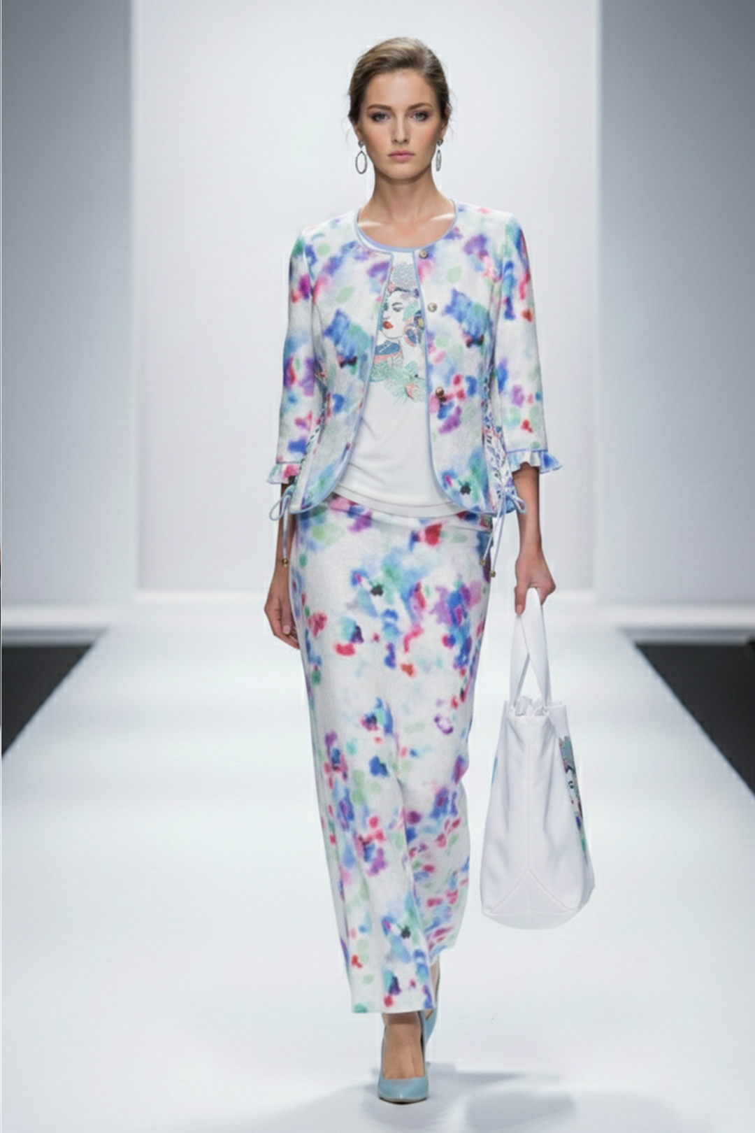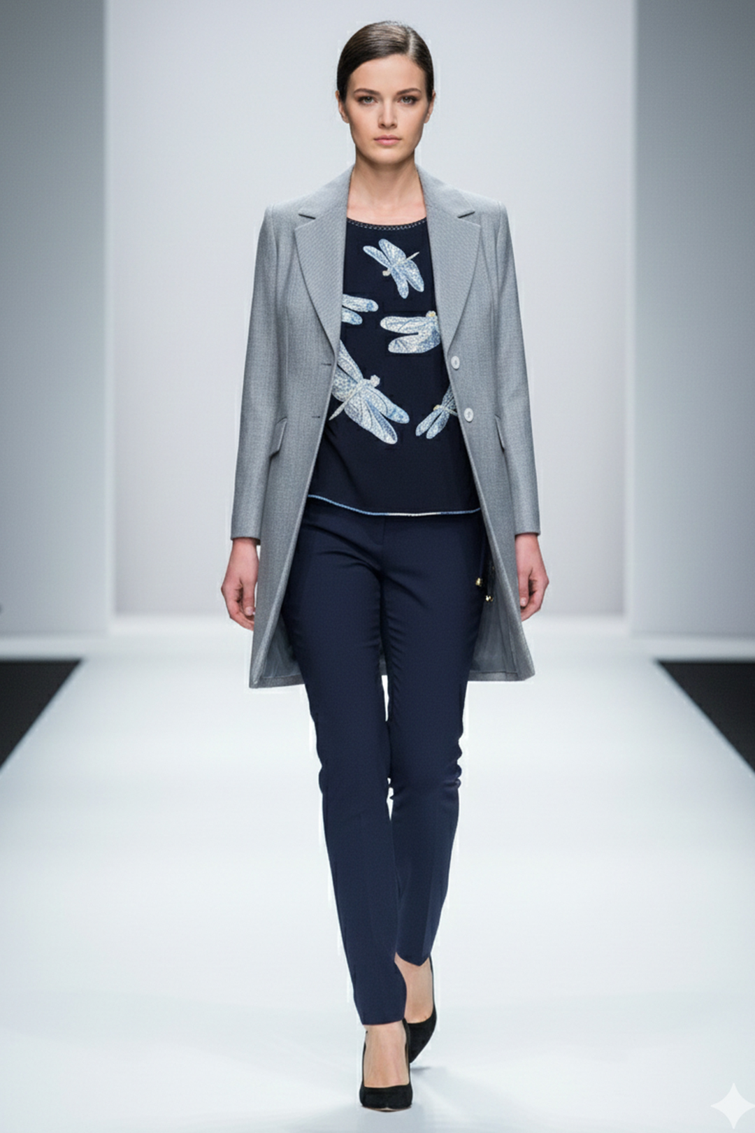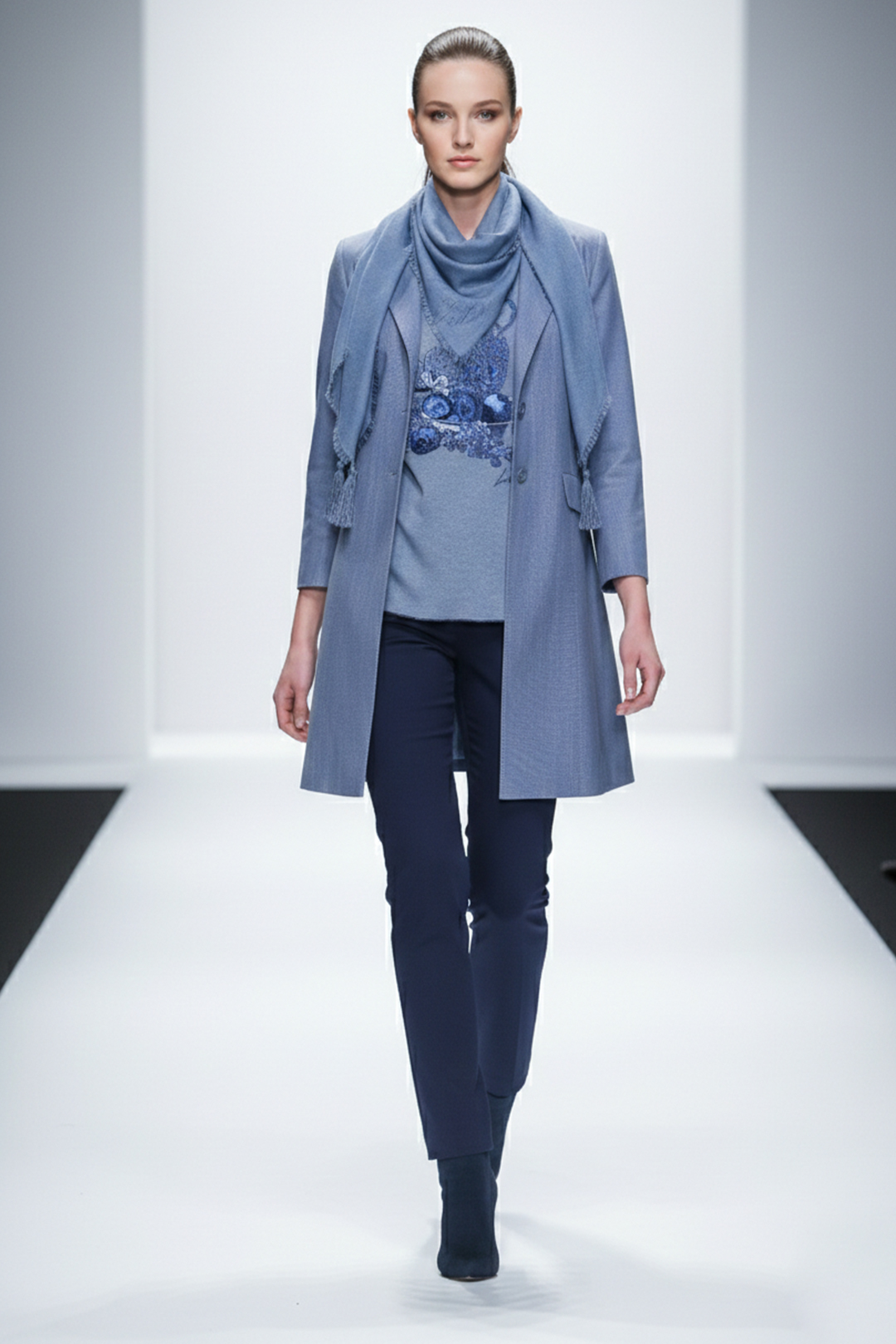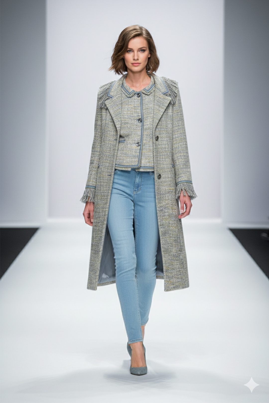 Couture-Jacke mit gestickter Passe, Brokat mit grau-blauen Kontrasten