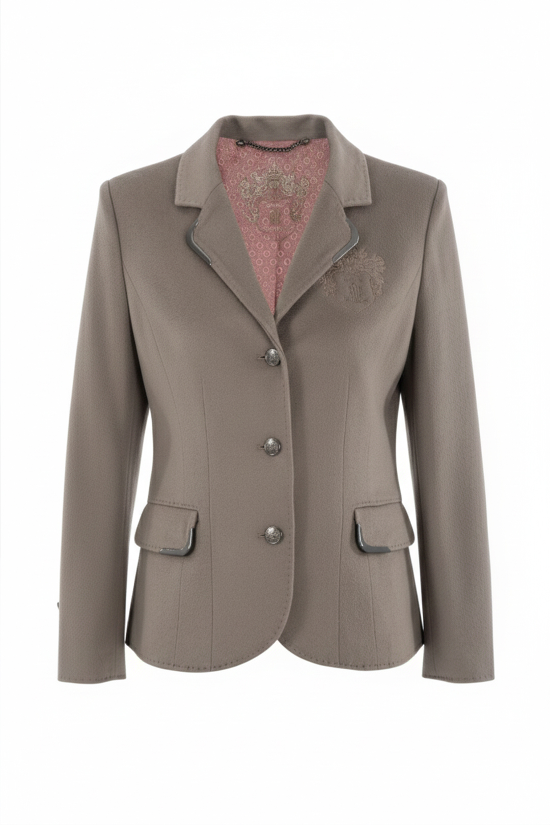 Longblazer aus feiner Merinowolle mit Jaquardfutter unterlegt