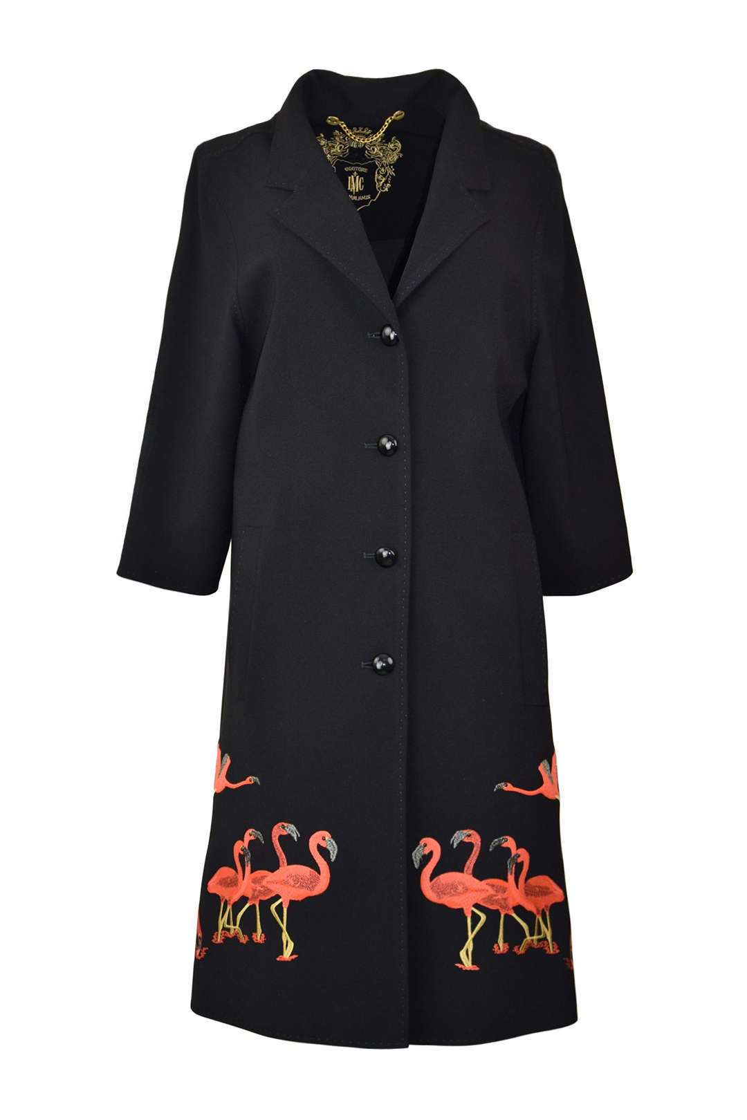 Mantel mit “flamingo-embroidery”, Revers und Taschen