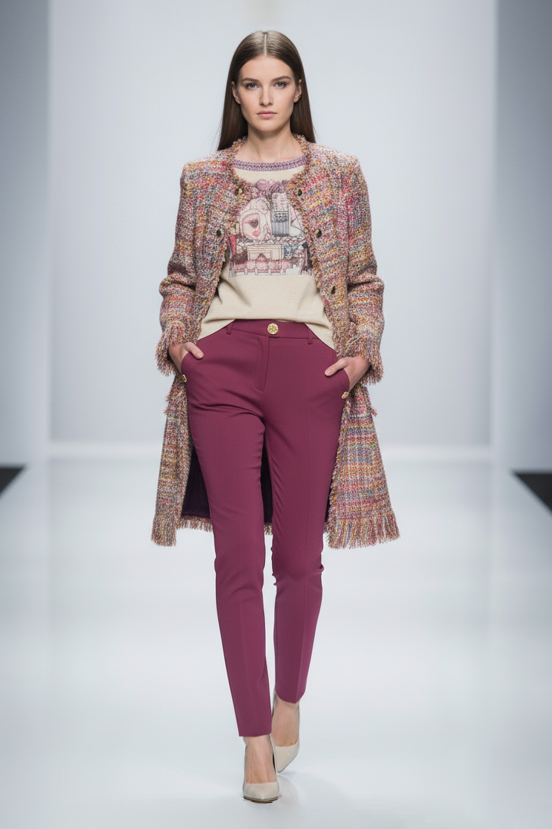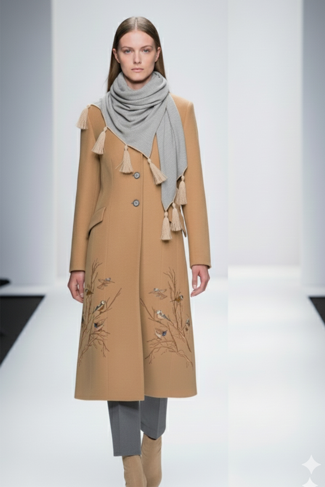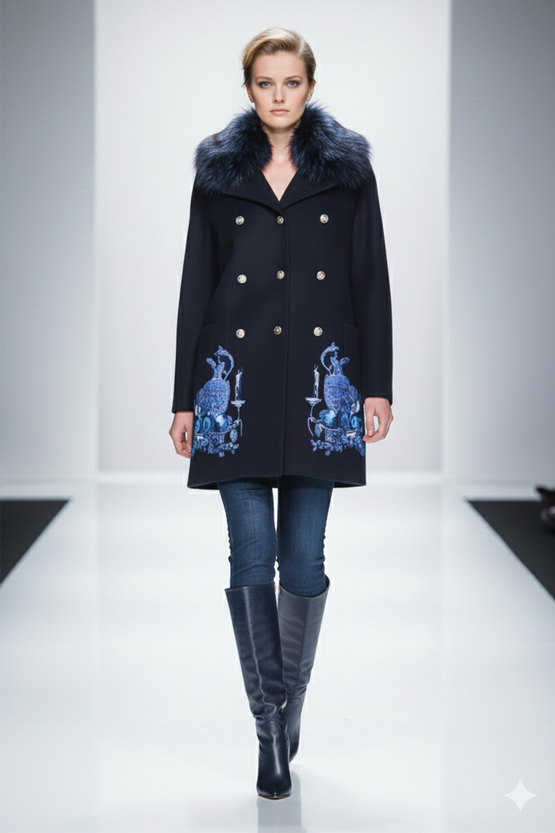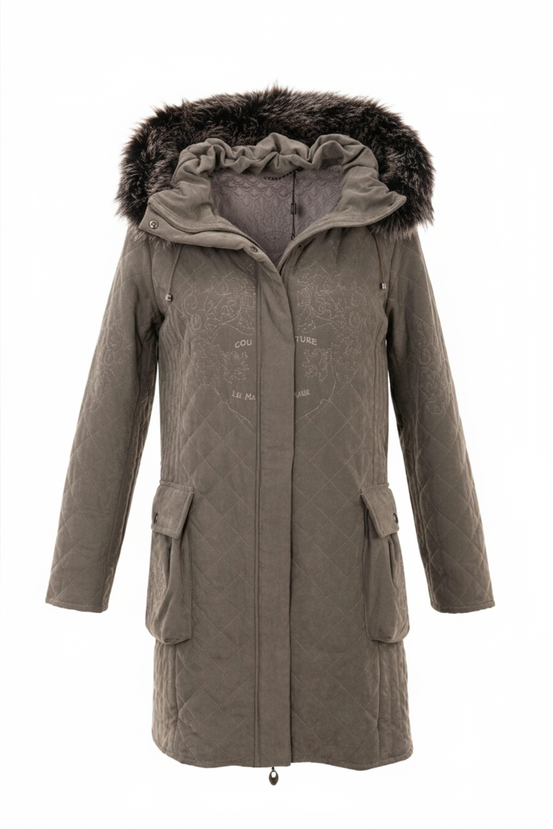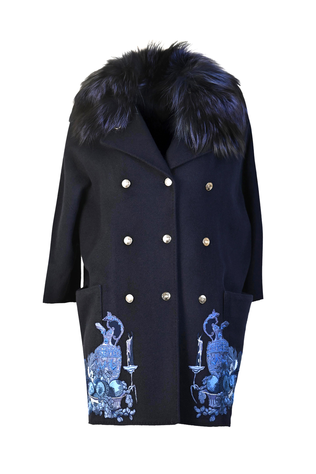 Mantel mit “flamingo-embroidery”, Revers und Taschen