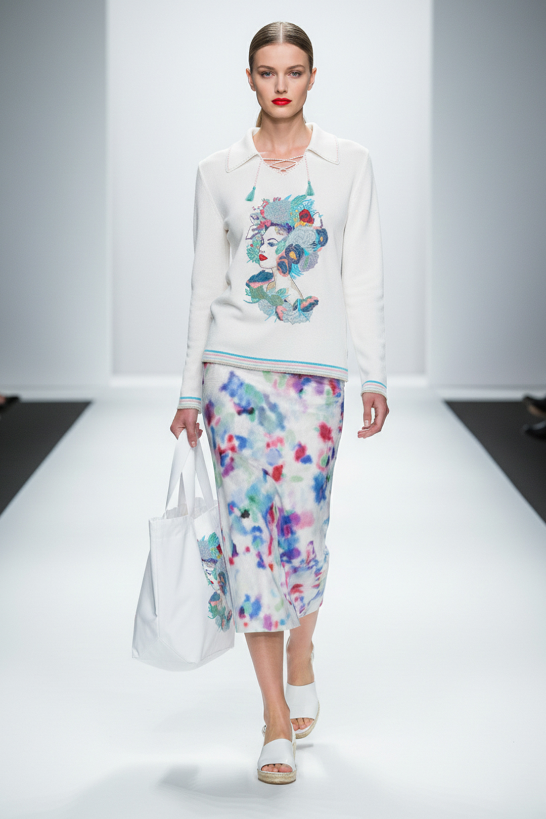 Pullover mit “gobelin-embroidery”, 100% Baumwolle, Langarm