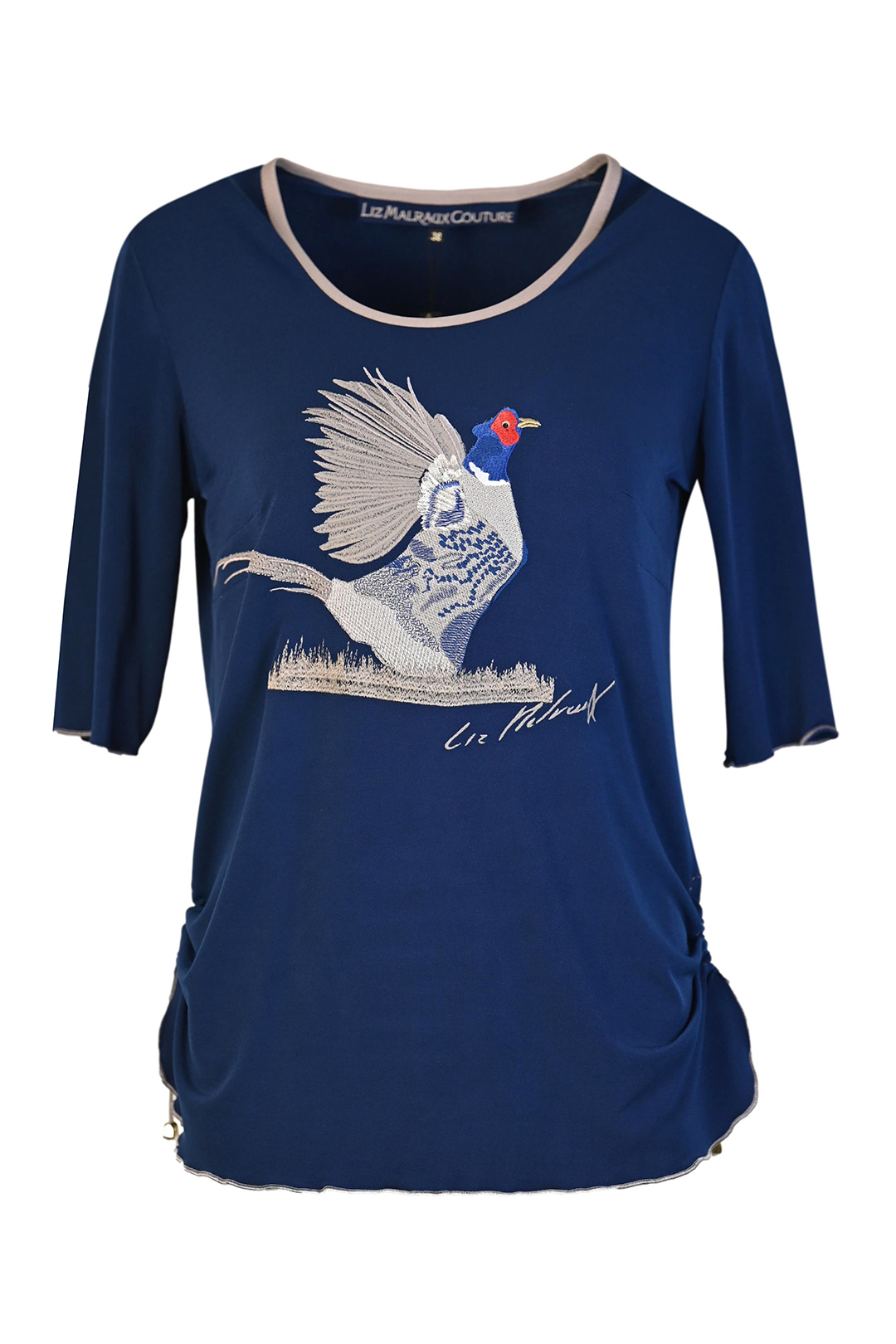 Shirt mit “fasan-embroidery”, mit Kontrasteinfassung, Kurzarm