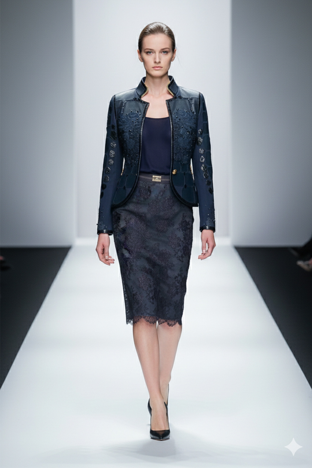 Top mit “ornament-emboidery” Stich:60.000 und appliziert 53 Kristallen von Swarovski