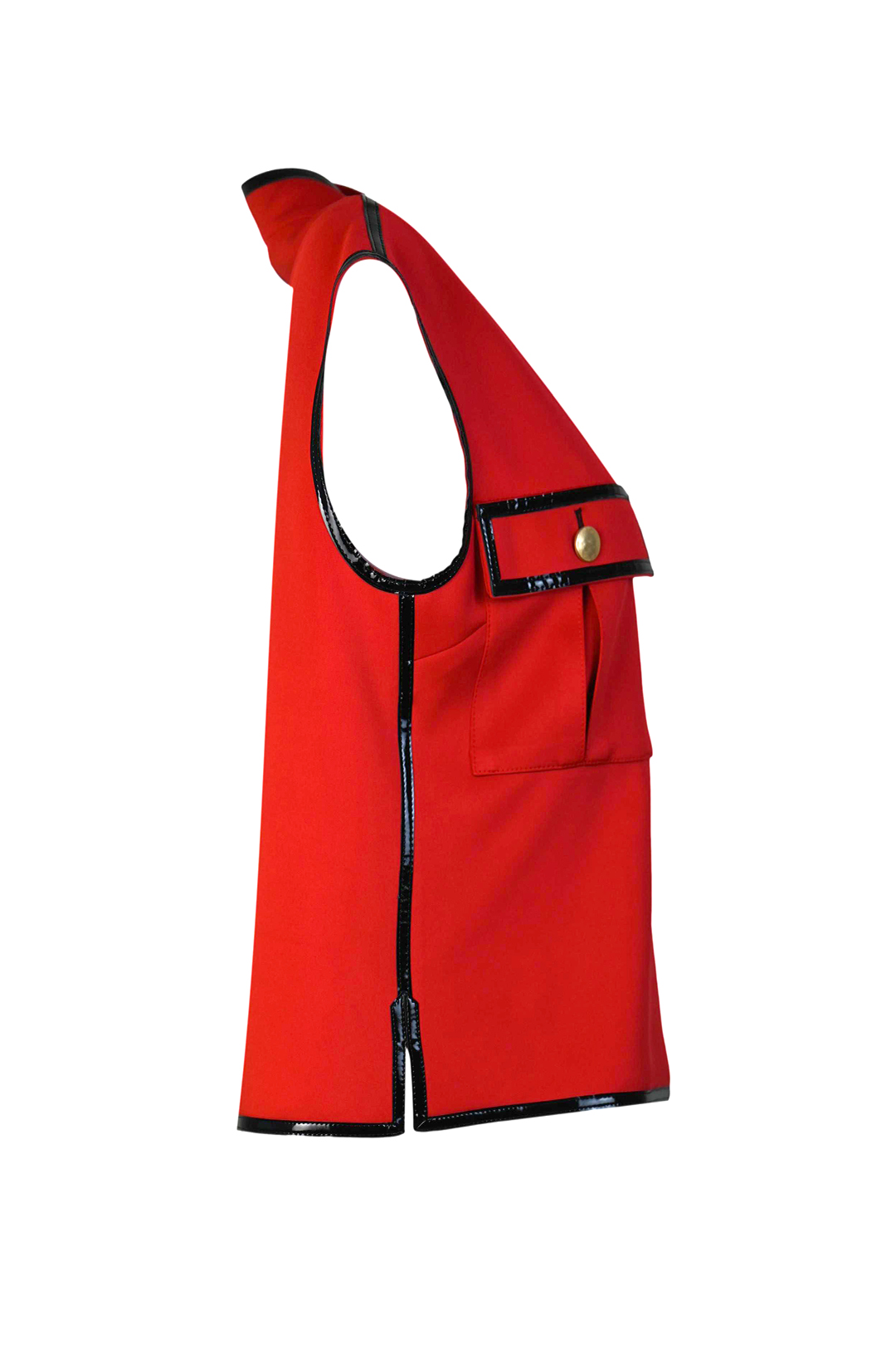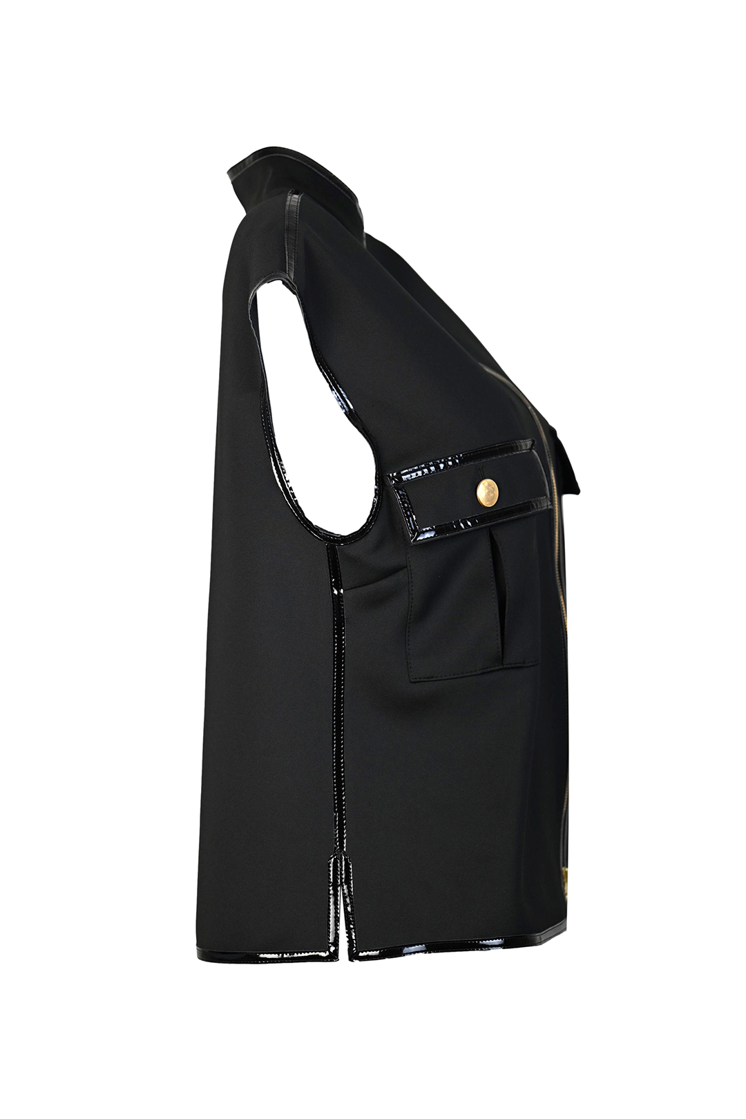 Weste aus Doublejersey mit Stehkragen und Pattentaschen, Lackkontrasten