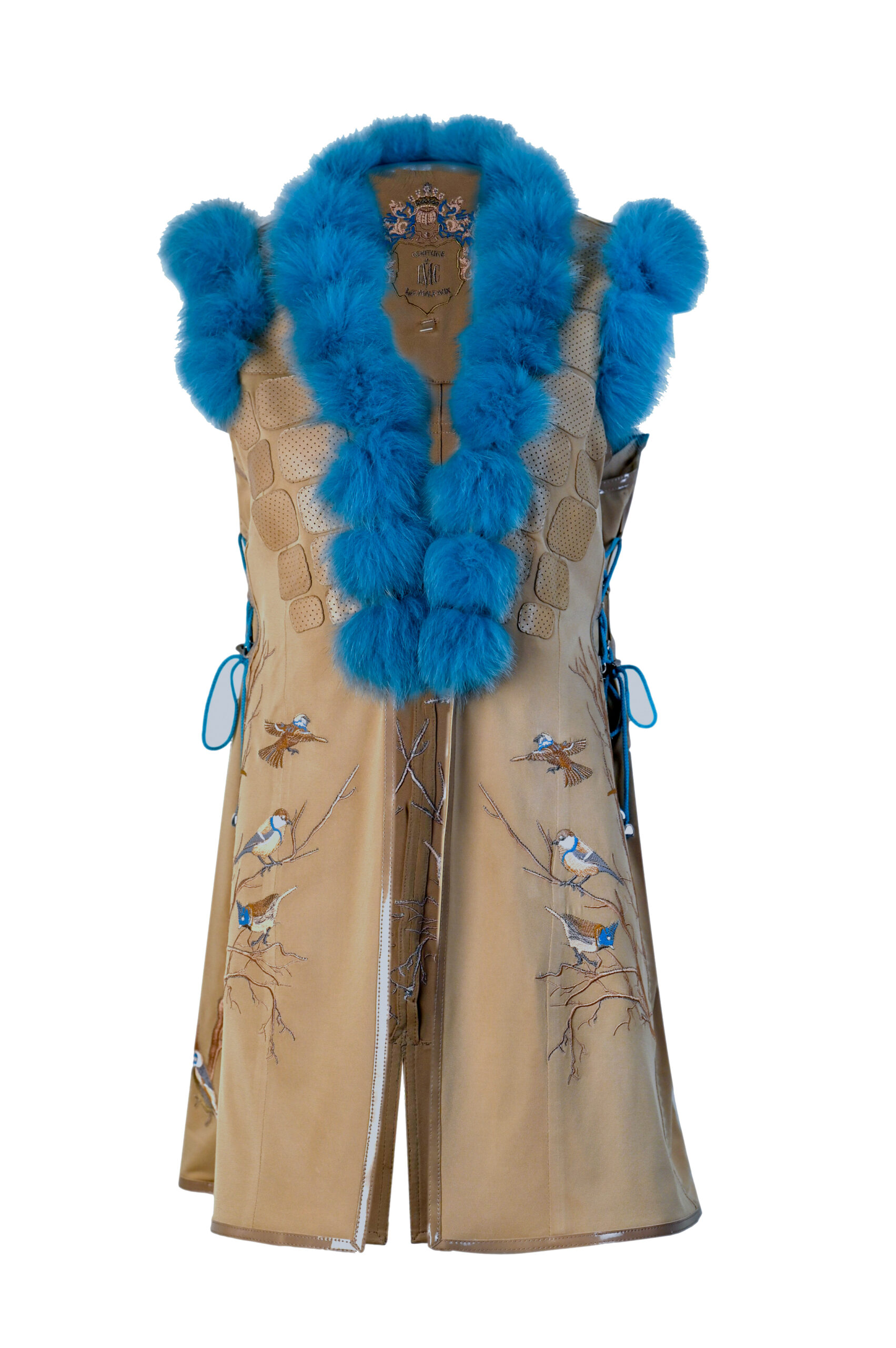 Longweste mit “winter birds-embroidery” und Fuchsverbrämung, Multisize