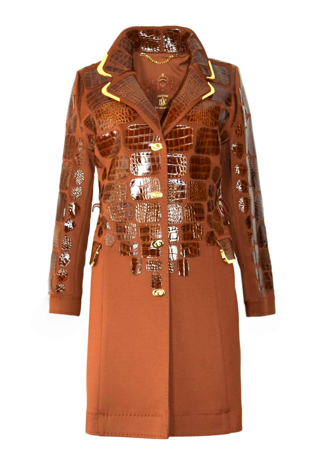 Longblazer, Mantel aus Doublejersey mit Lederpatches in Kroko-Optik und hartvergoldeten Ecken, Multisize