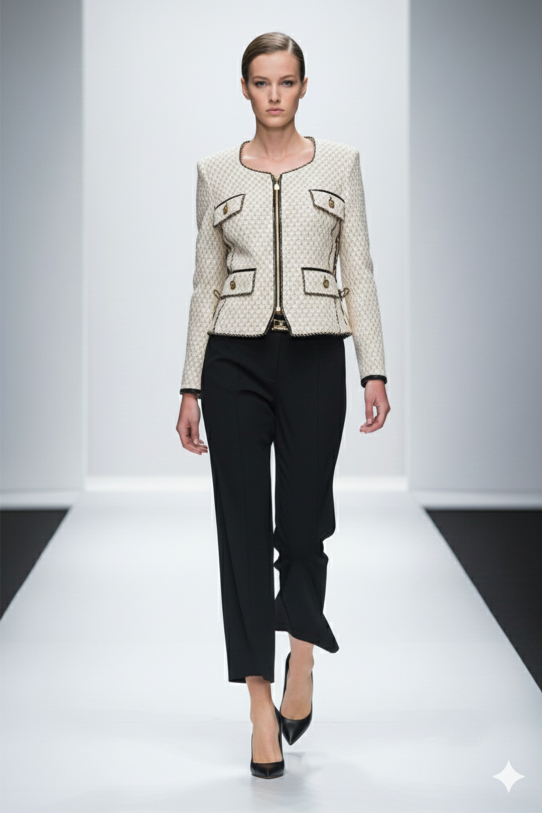 Marlene-Hose aus Jersey mit 6 Zierknöpfen, Kontrasten, 4 Taschen und zweifarbigen elastischen Bund