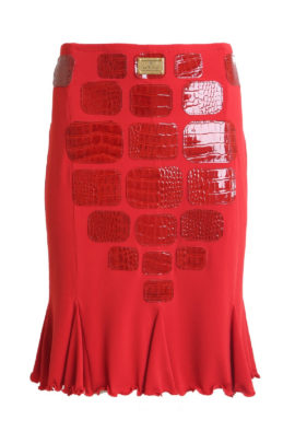Rock mit Godetfalten, Lederpatches in Kroko-Optik und LMC-Logo