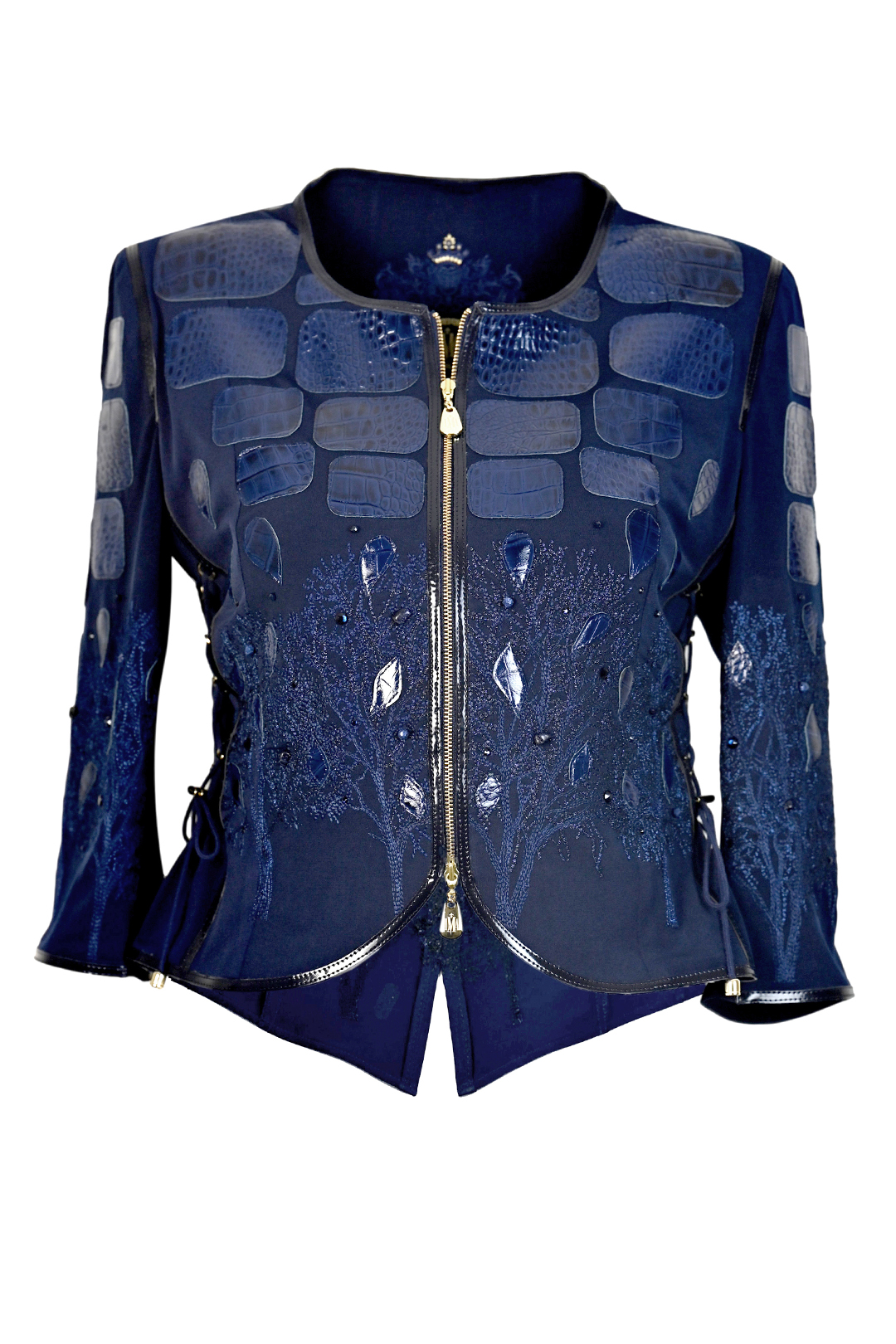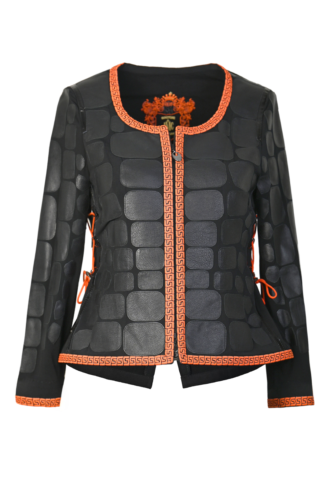 Blazer mit Lederpatches in Kroko-Optik, Titan- Drehverschlüßen und 8 Zierknöpfen, Revers, aufgesetzen Taschen und Multisize Schnürung