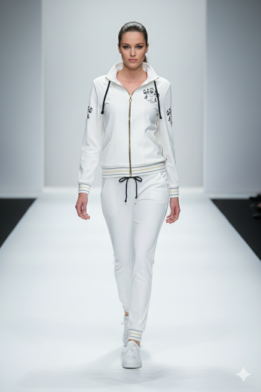 • Jogger-Pants aus Nicki-Stoff,mit seitlicher Bordüre