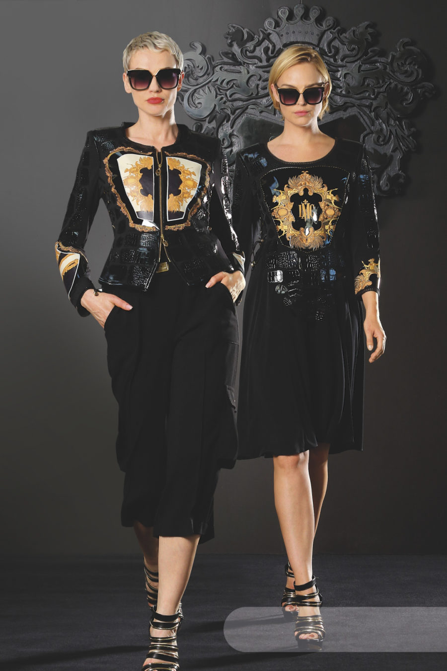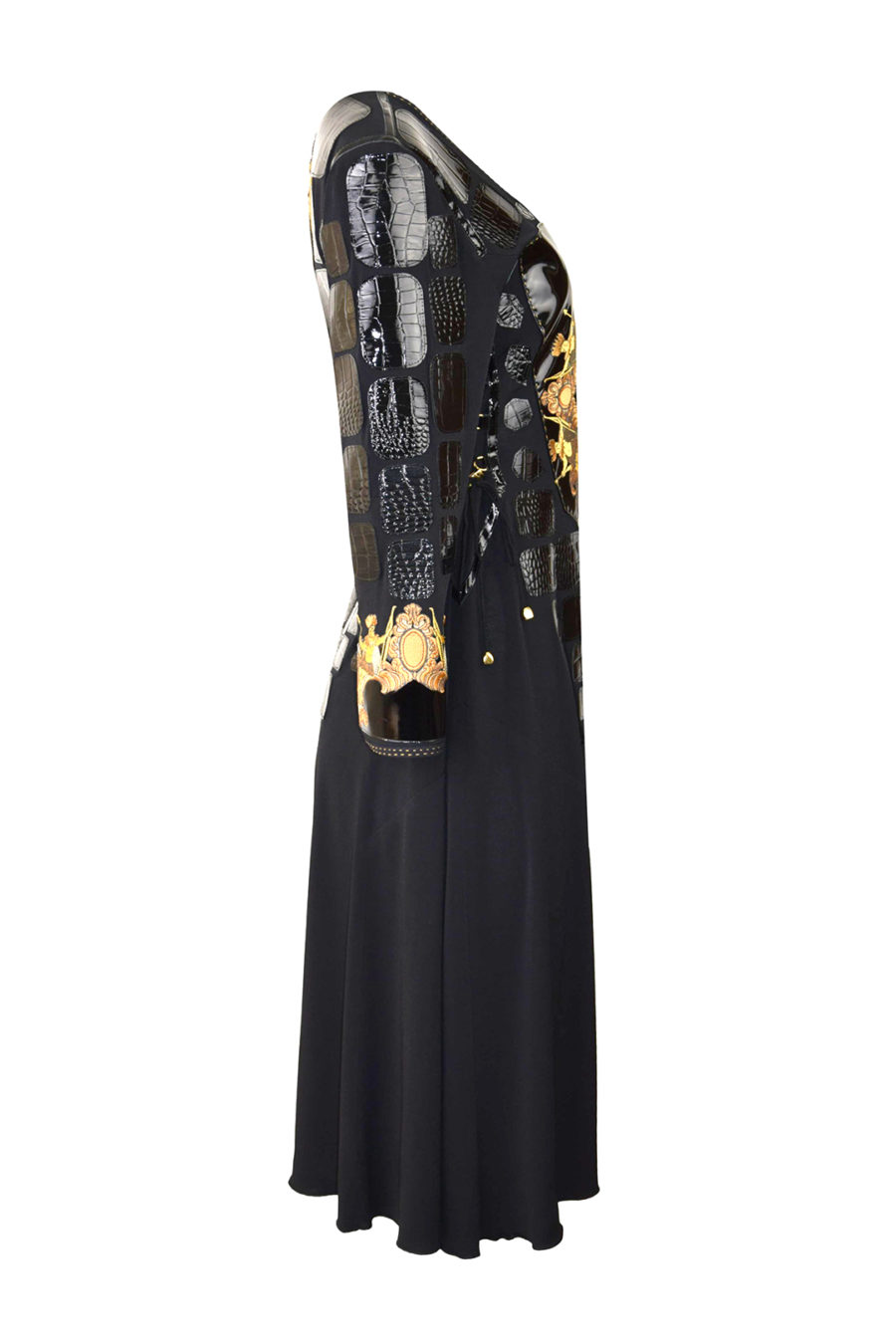 “Amirage” Kleid mit “amirage-embroidery” auf Lack gestickt und Lederpatches in Kroko-Optik, Multisize