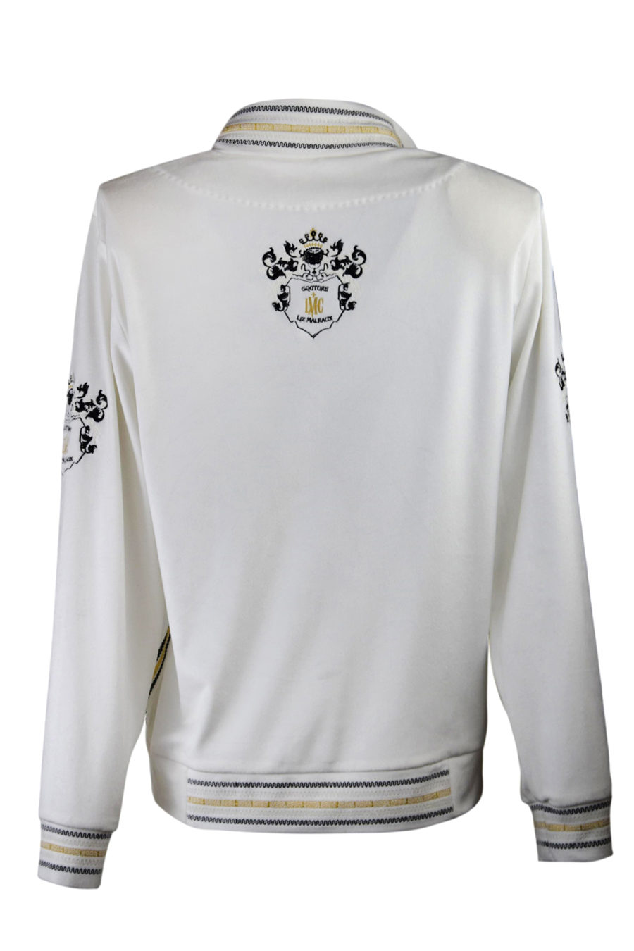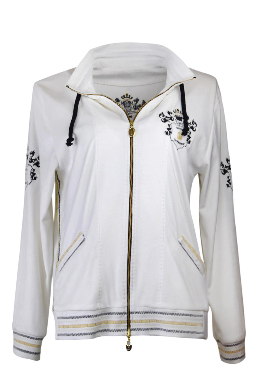 Blouson aus Nicki-Stoff, mit gesticktem Bündchen und “heraldic-embroidery”, 4 Motive,
