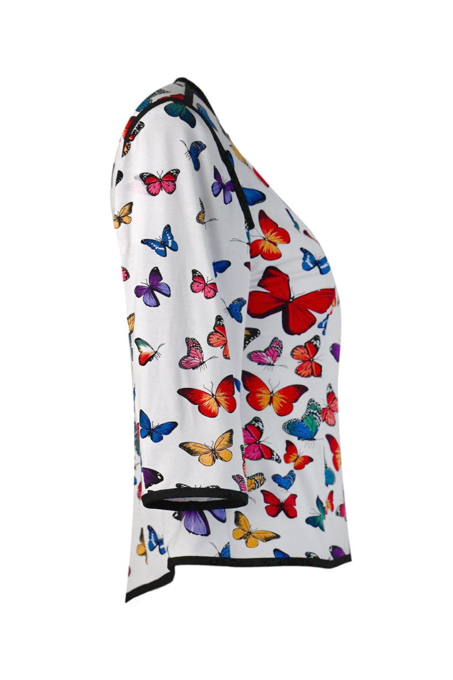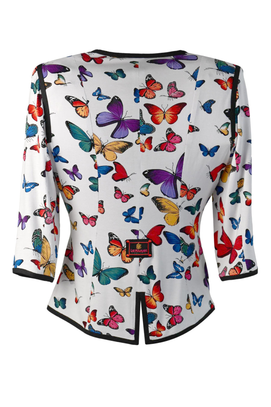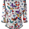 Blusenjacke aus Viskose in Butterfly-Print mit Lackkontrasten in schwarz, mit Zipp und 3/4 Ärmel