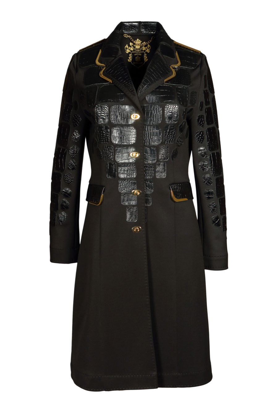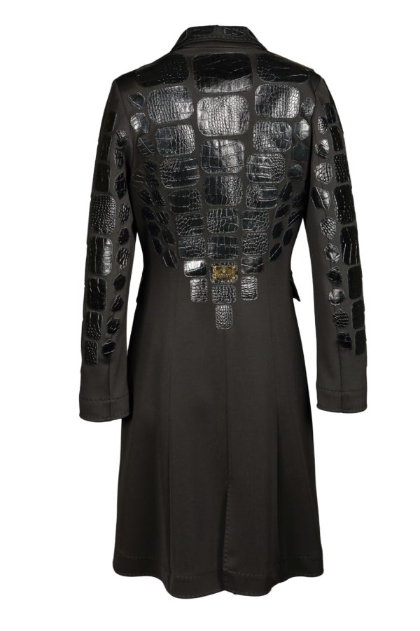 Longblazer, Mantel aus Doublejersey mit Lederpatches in Kroko-Optik und hartvergoldeten Ecken, Multisize