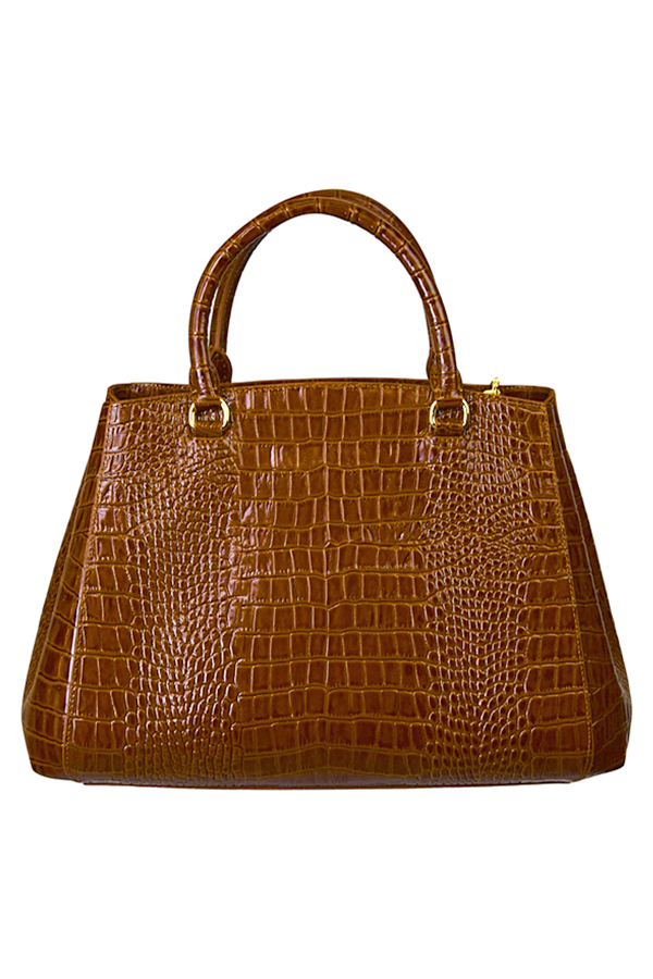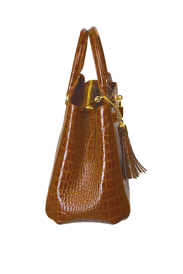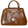 “Cornet-Bag” aus Kroko geprägten Leder mit 3 Innentaschen, zusätzlicher abnehmbarer Schultergurt