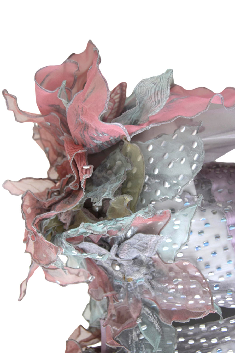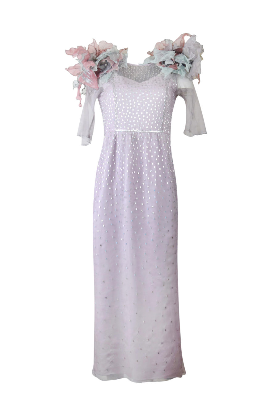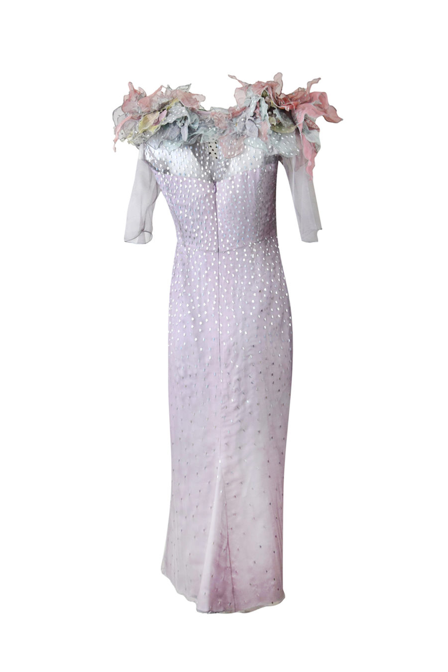 Couture – Abendkleid “Amethyst”, mit handbemalten Organza-Blüten und Swarovski Perlen