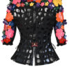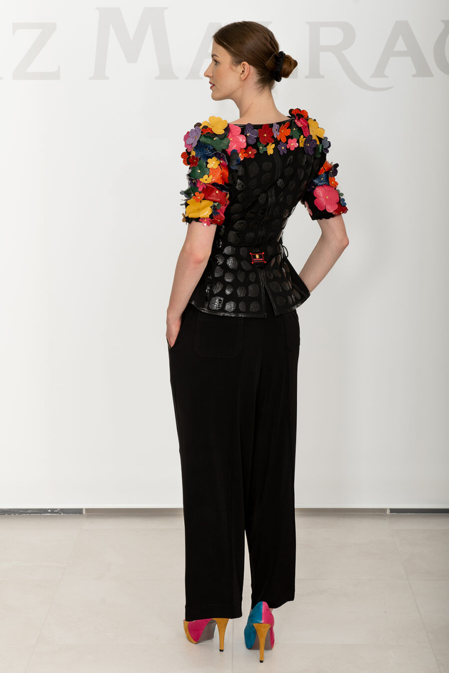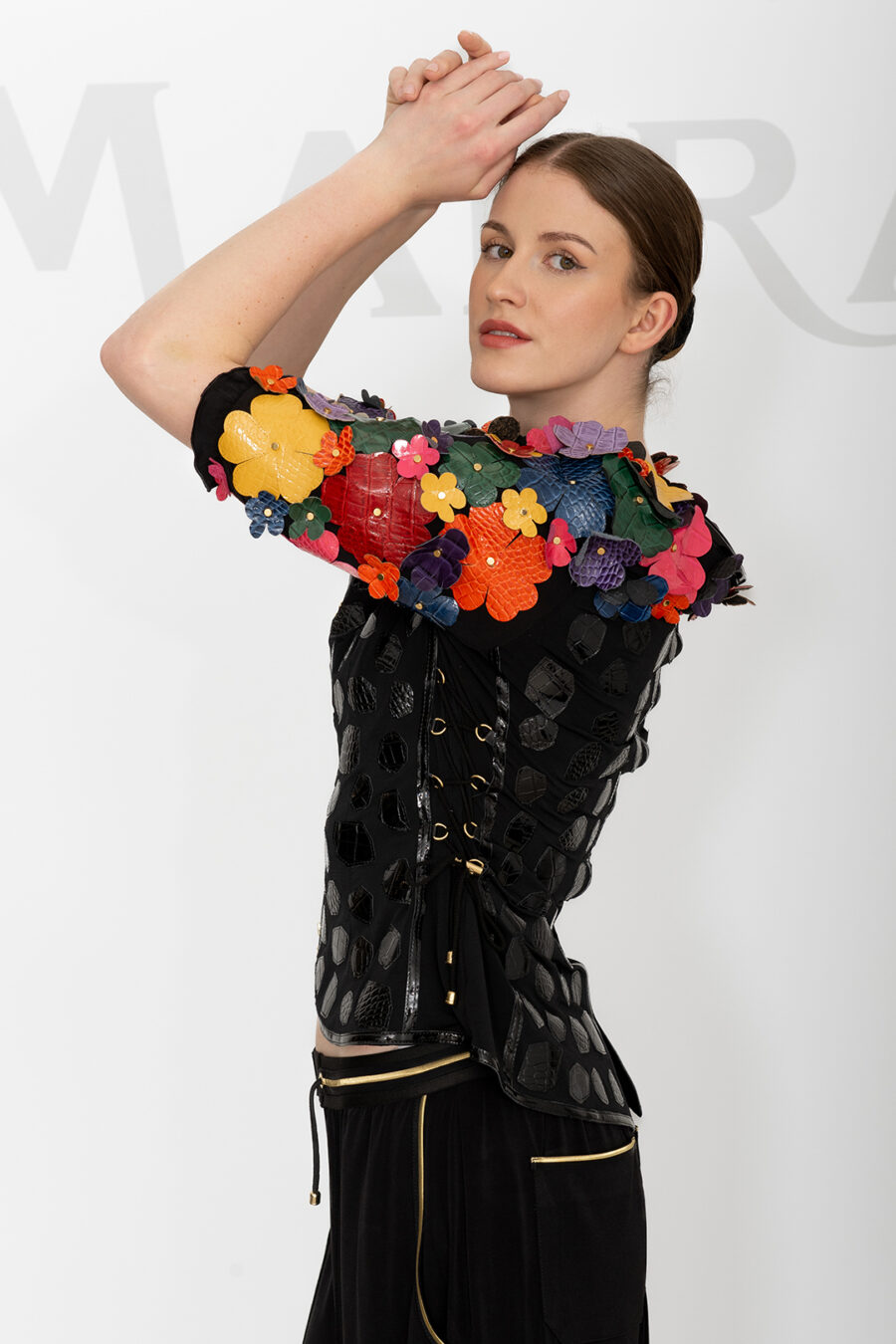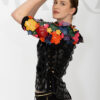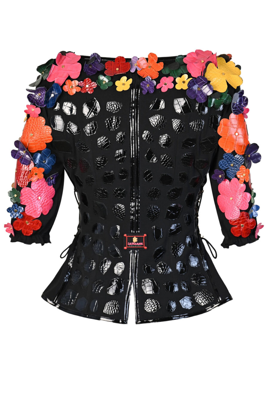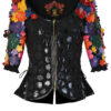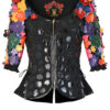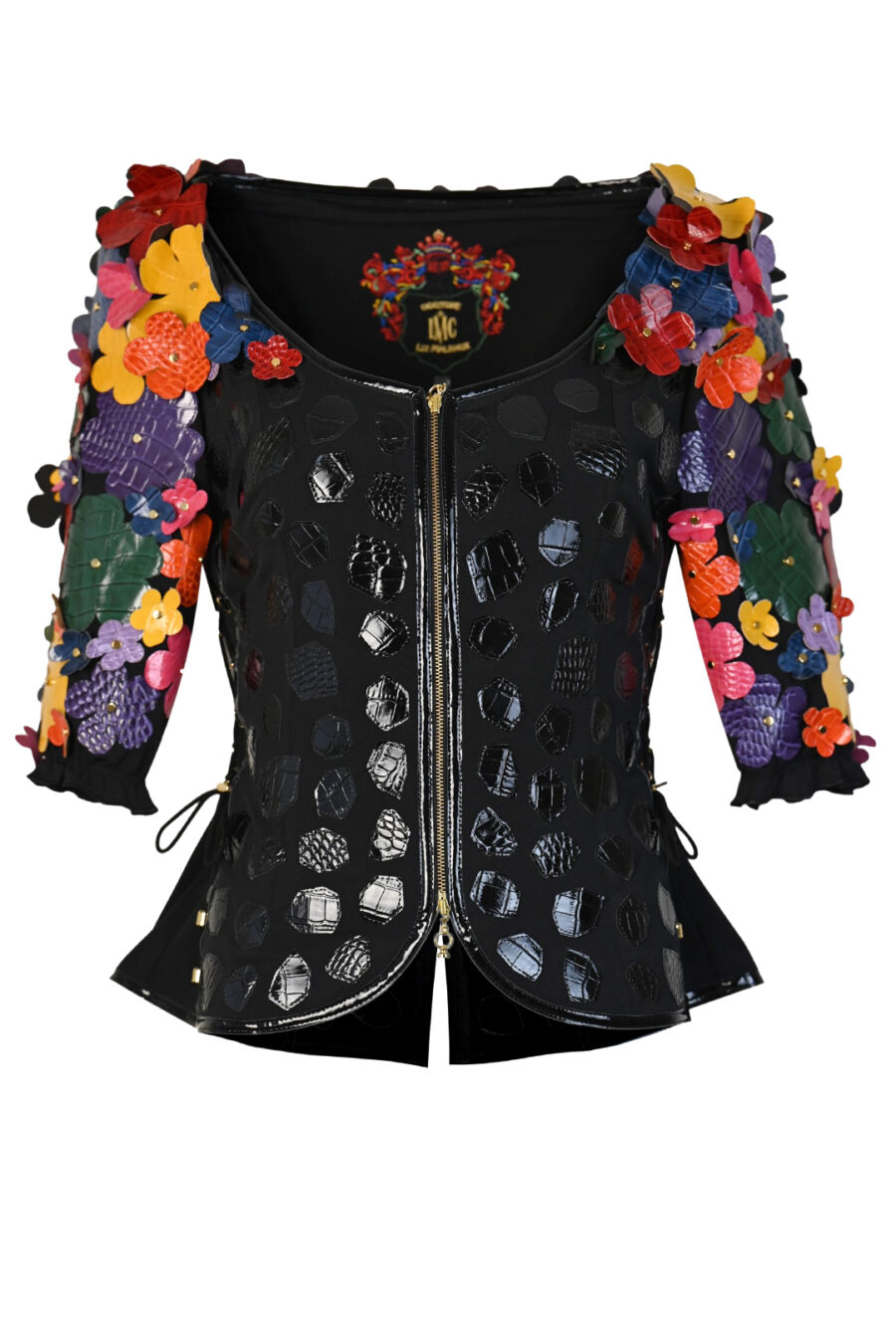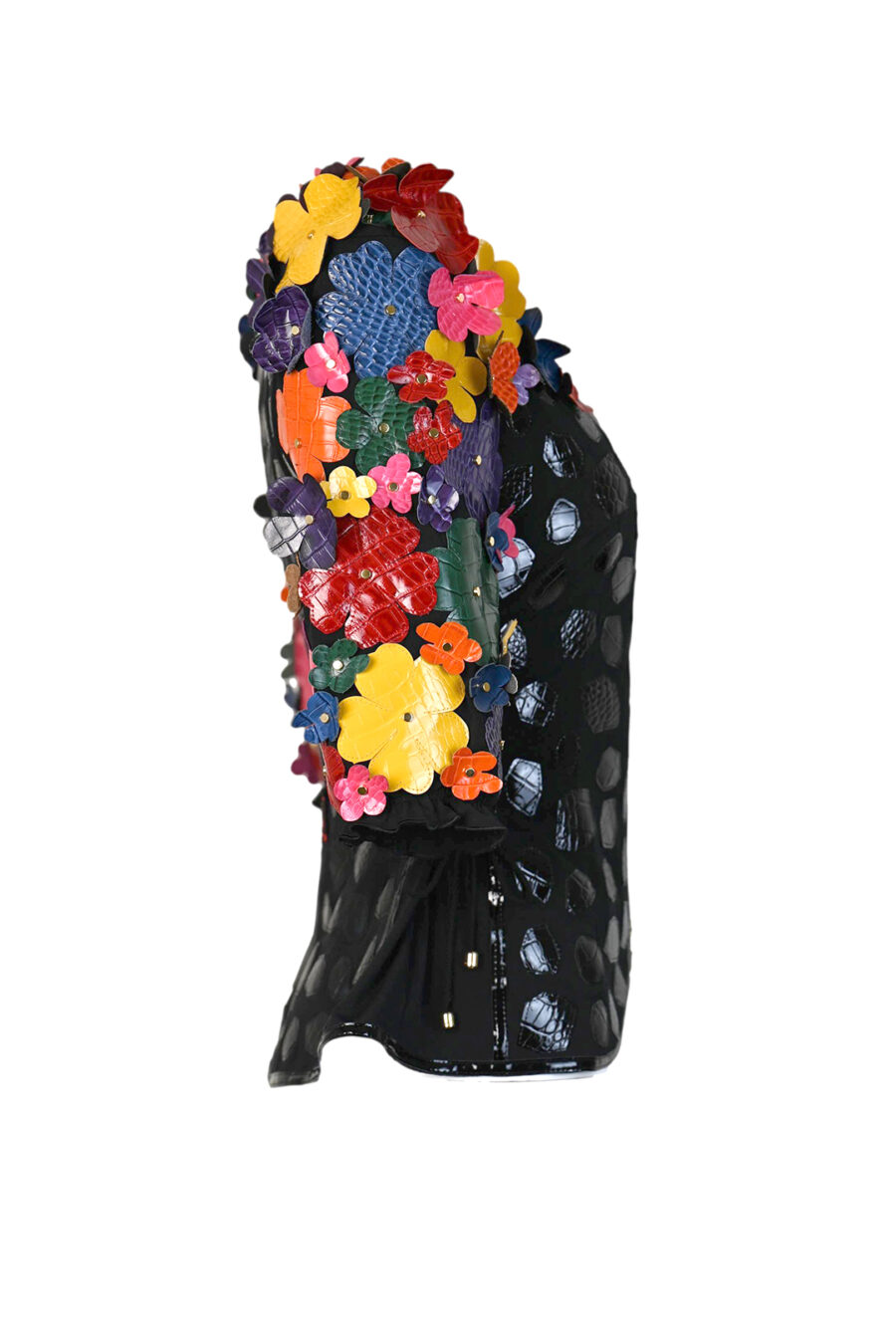 Couture Jacke mit 104 Blüten in Leder in Kroko-Optik appliziert, und vergoldeten Nieten, Kurzarm, Multisize