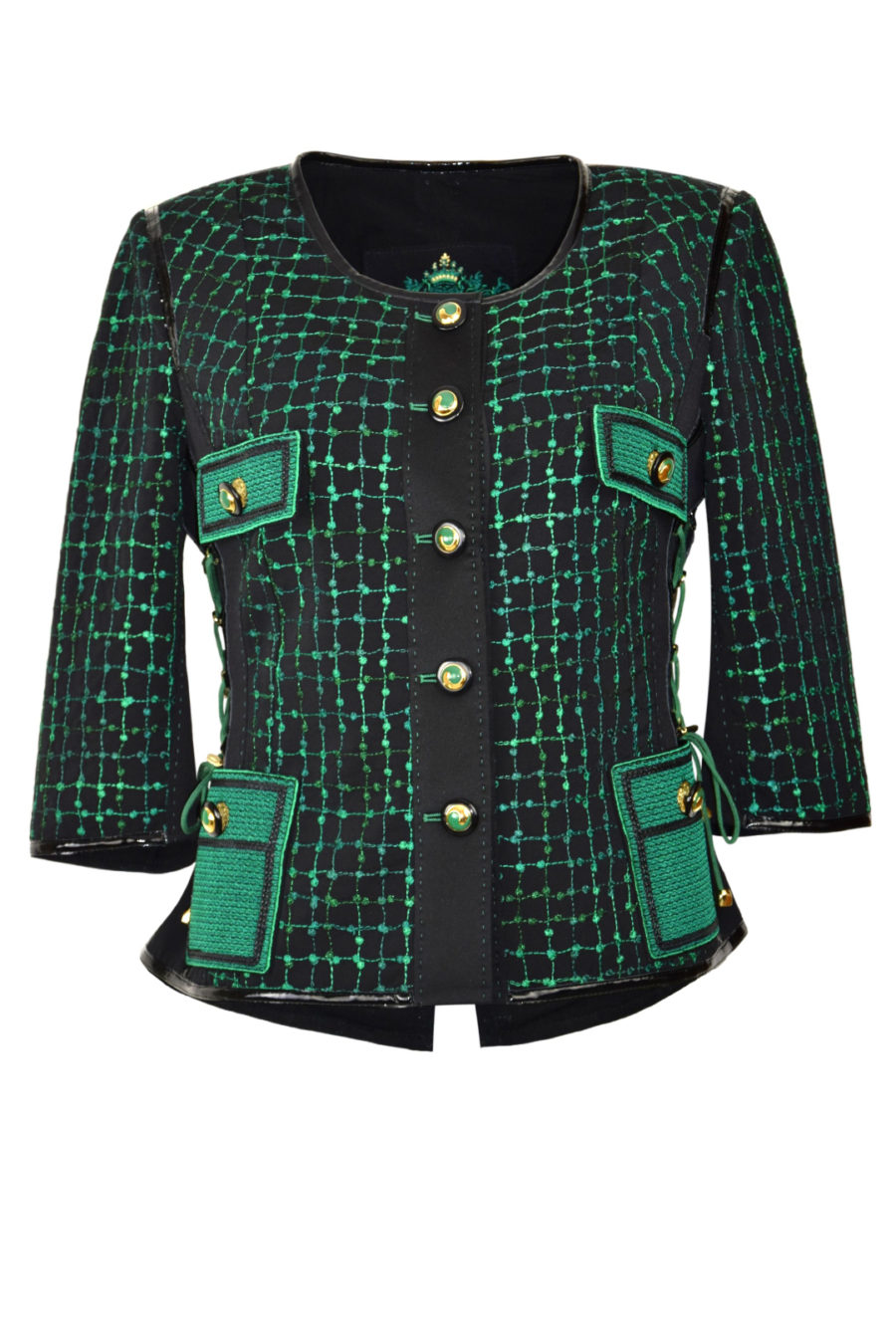 Couture-Jacke mit “Bouclé-embroidery”, gestickten Pattentaschen und Knöpfen