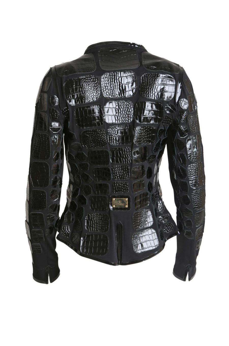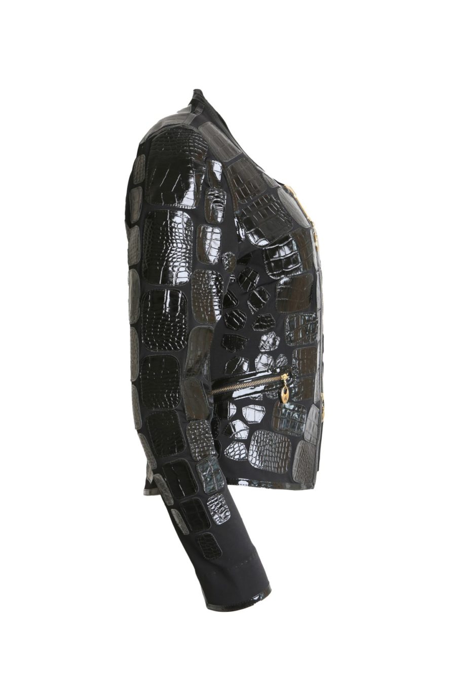 Jacke mit Goldbeschlägen und Zipp-Taschen, Lederpatches in Kroko-Optik, Multisize