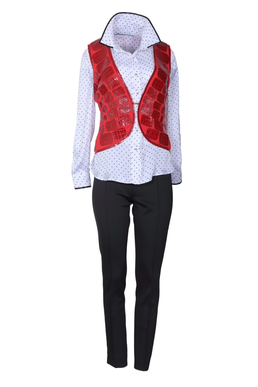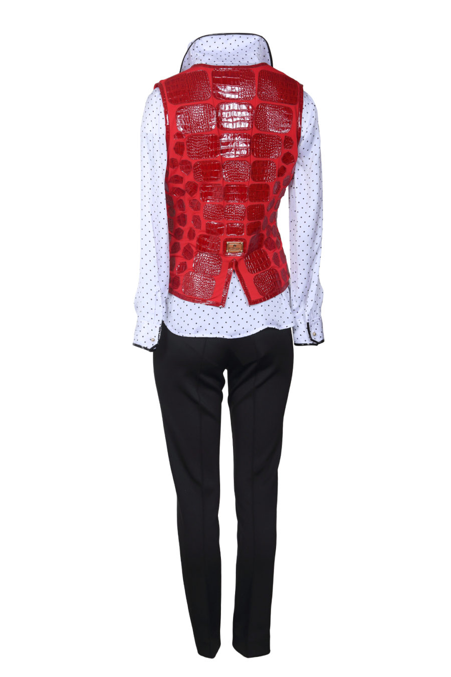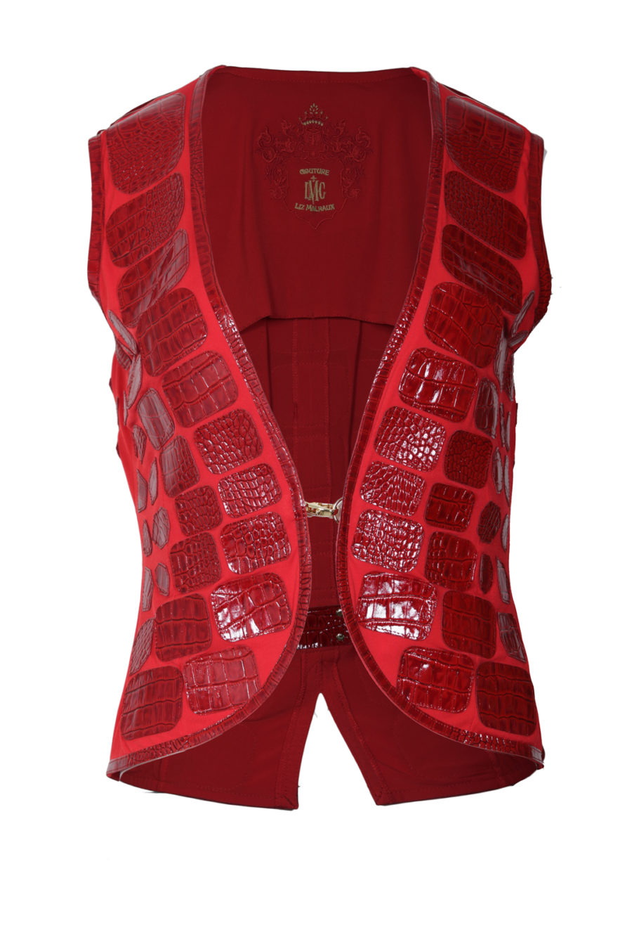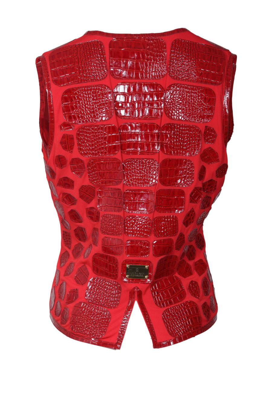 Diese elegante Weste aus hochwertigem Singlejersey ist mit handapplizierten Lederpatches in Kroko-Optik ausgestattet und bietet eine praktische Sicherheitstasche.