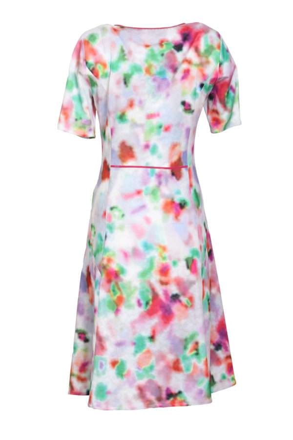 Kleid mit Lackkontrasten, Calypso-Print auf elastischem Jacquard