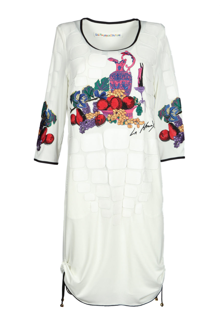 Kleid mit “still-life-embroidery”,-4 Motive, Nappapatches auf Jersey, 7/8 Arm, Kordelzüge am Saum