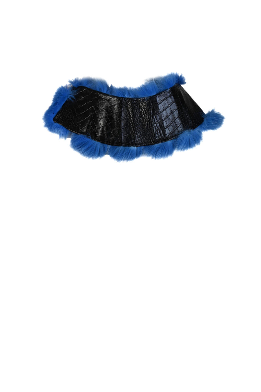 Fuchskragen mit Leder in Krokoptik, geschlossen mit hartvergoldetem Karabinerhaken